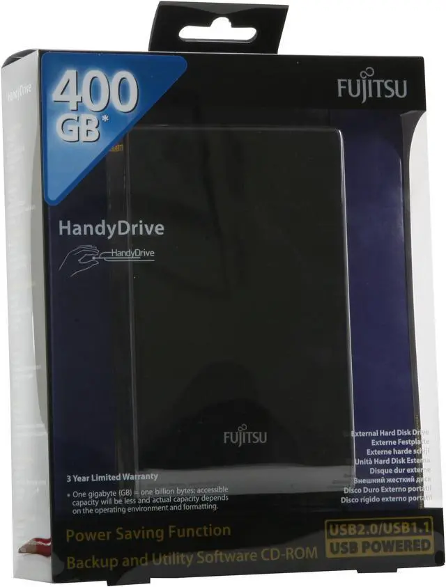 | Features | With 400GB capacity, backup or easily carry office files, MP3s, videos and photos Powered from host computer — no need for an AC adapter USB 2.0 interface Power saving features Security and backup software bundle included |