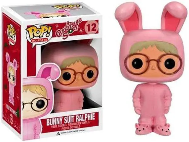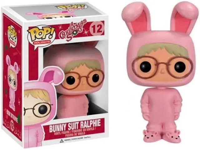 Ralphie from the Christmas classic A Christmas Story as a vinyl figure! Stands 3 3/4-inches tall. Check out Ralphie in his pink bunny pajamas from Aunt Clara! Peter Billingsley's Ralphie from the Christmas classic A Christmas Story has been given the Pop! Vinyl treatment with this A Christmas Story Pink Bunny Ralphie Pop! Vinyl Figure! Ralphie looks great in those pink bunny PJs his Aunt Clara got him for Christmas, even if he doesn't think so. Standing 3 3/4-inches tall, the A Christmas Story Pink Bunny Ralphie Pop! Vinyl Figure makes for a great display piece or conversation starter on your desk at work! Ages 5 and up.