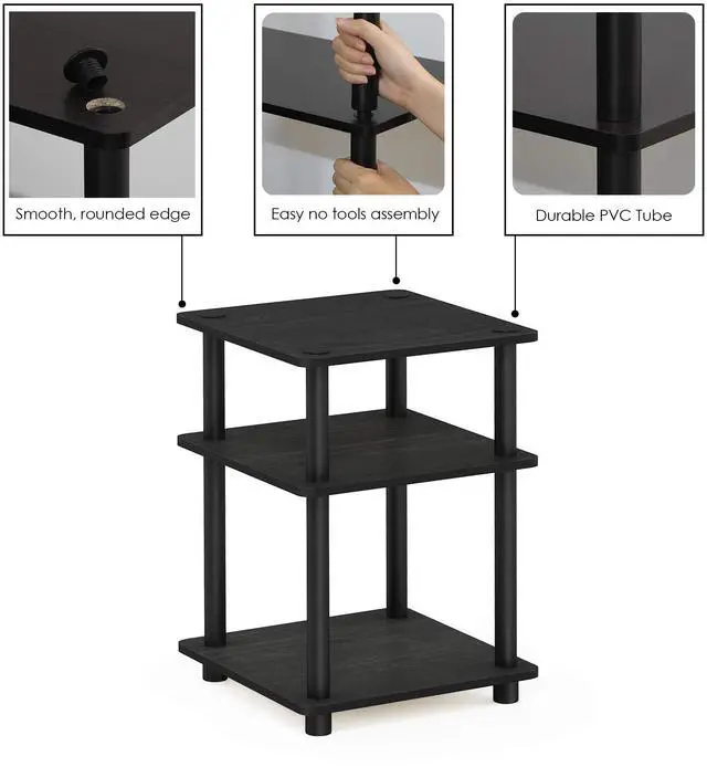 The shelves of this end table are finished with rounded edges, creating a more user-friendly design that feels less harsh to the touch, while also enhancing safety and adding a subtle, polished detail to the overall appearance of the piece