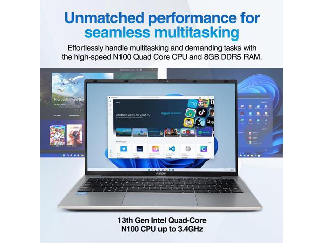 Superior Performance: Powered by an N100 Intel Quad-Core CPU and 8GB DDR5 RAM, the Fusion5 Lapbook ensures seamless multitasking and smooth operation.