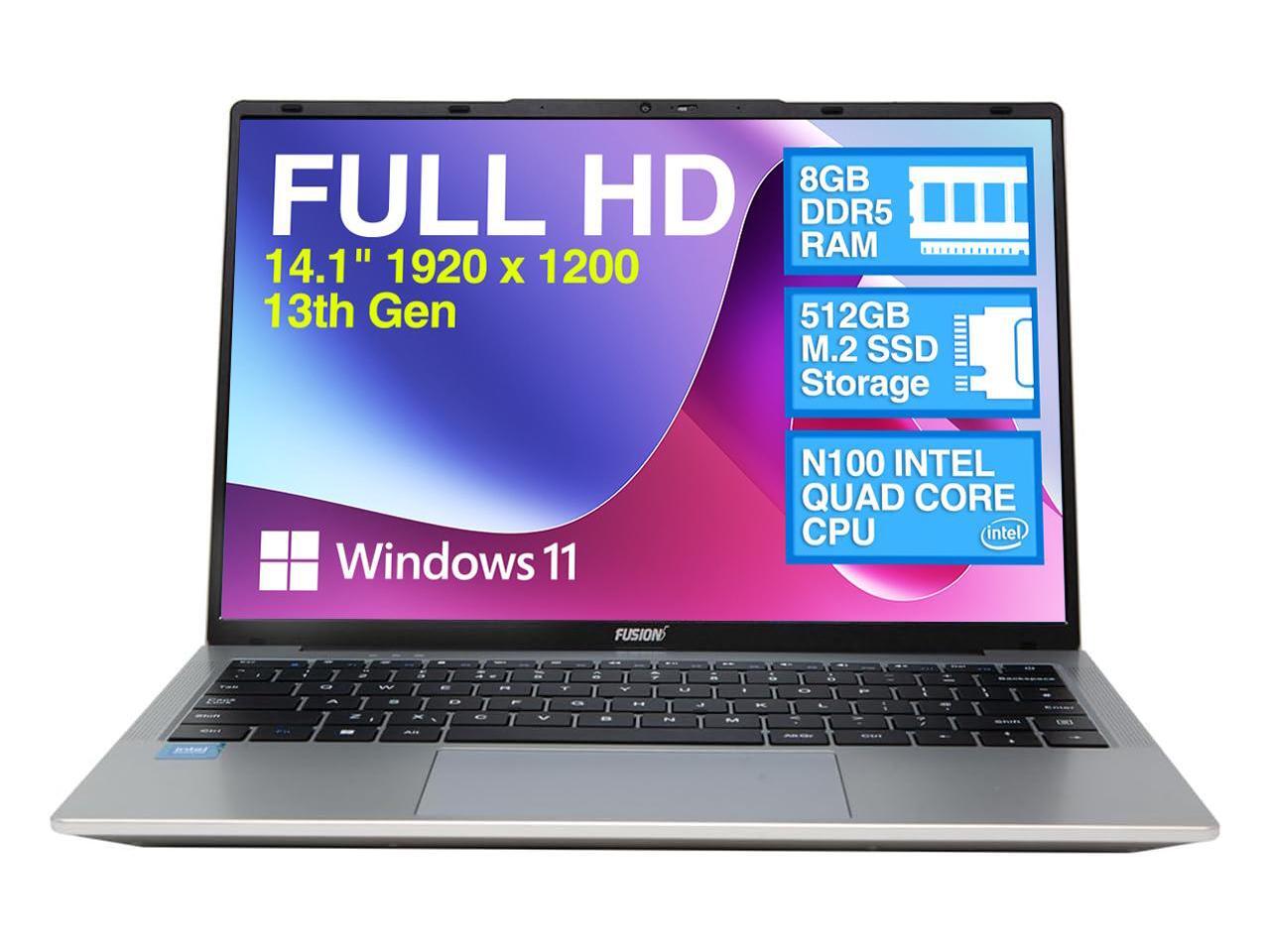 Fusion5 14.1" Windows 11 Full HD Laptop - 512GB SSD Storage, 8GB RAM, Quad-Core CPU, Dual-Band WiFi, USB 3.0, 14 Inch Display, Webcam