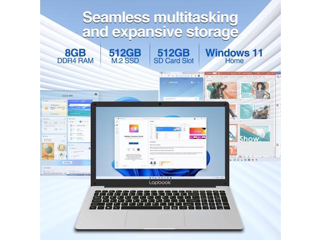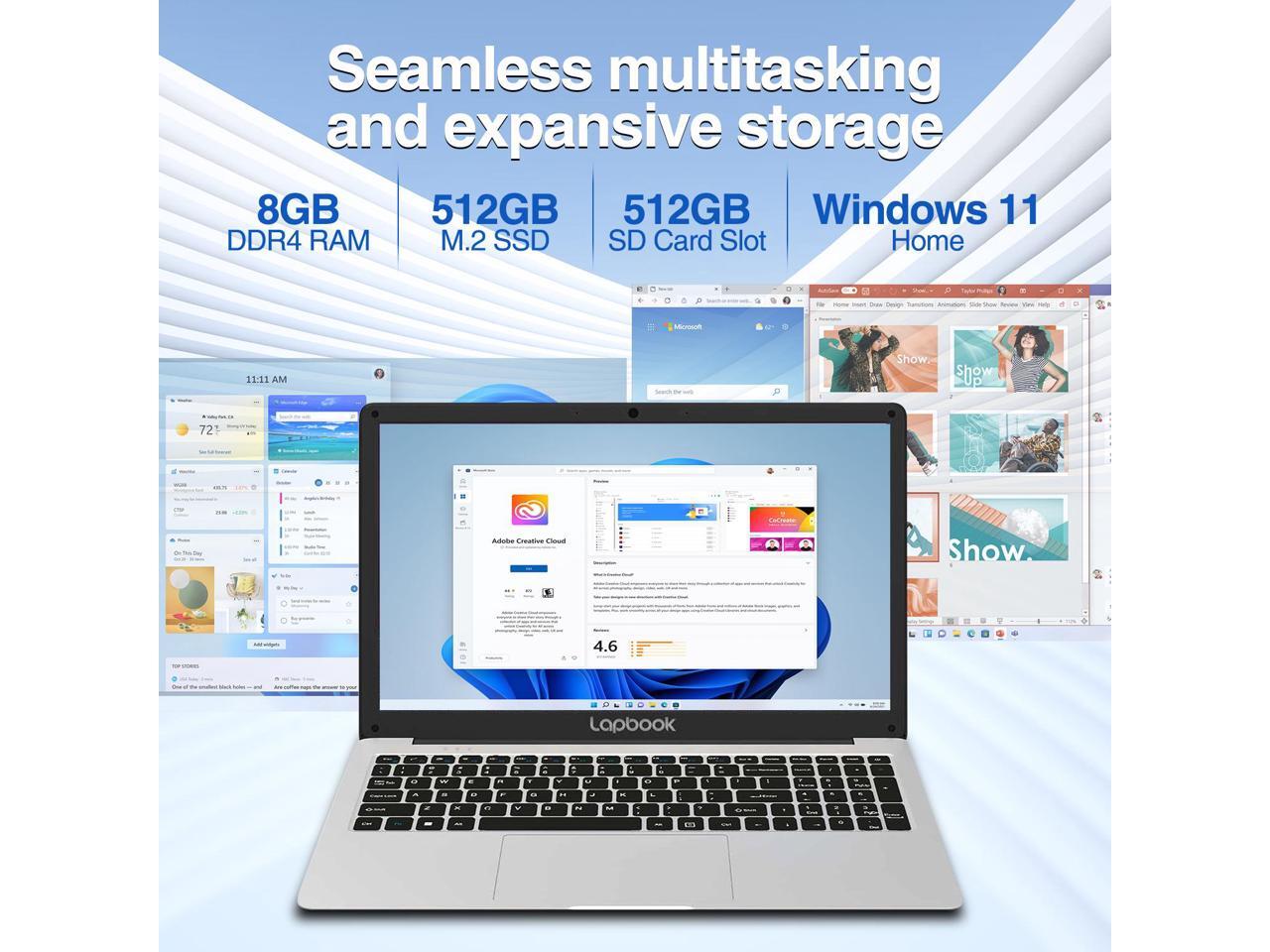 Powerful Performance: Powered by the Intel N4020C CPU, 8GB DDR4 RAM, and a 512GB M.2 SSD, this windows 11 laptop delivers smooth multitasking and responsive performance.