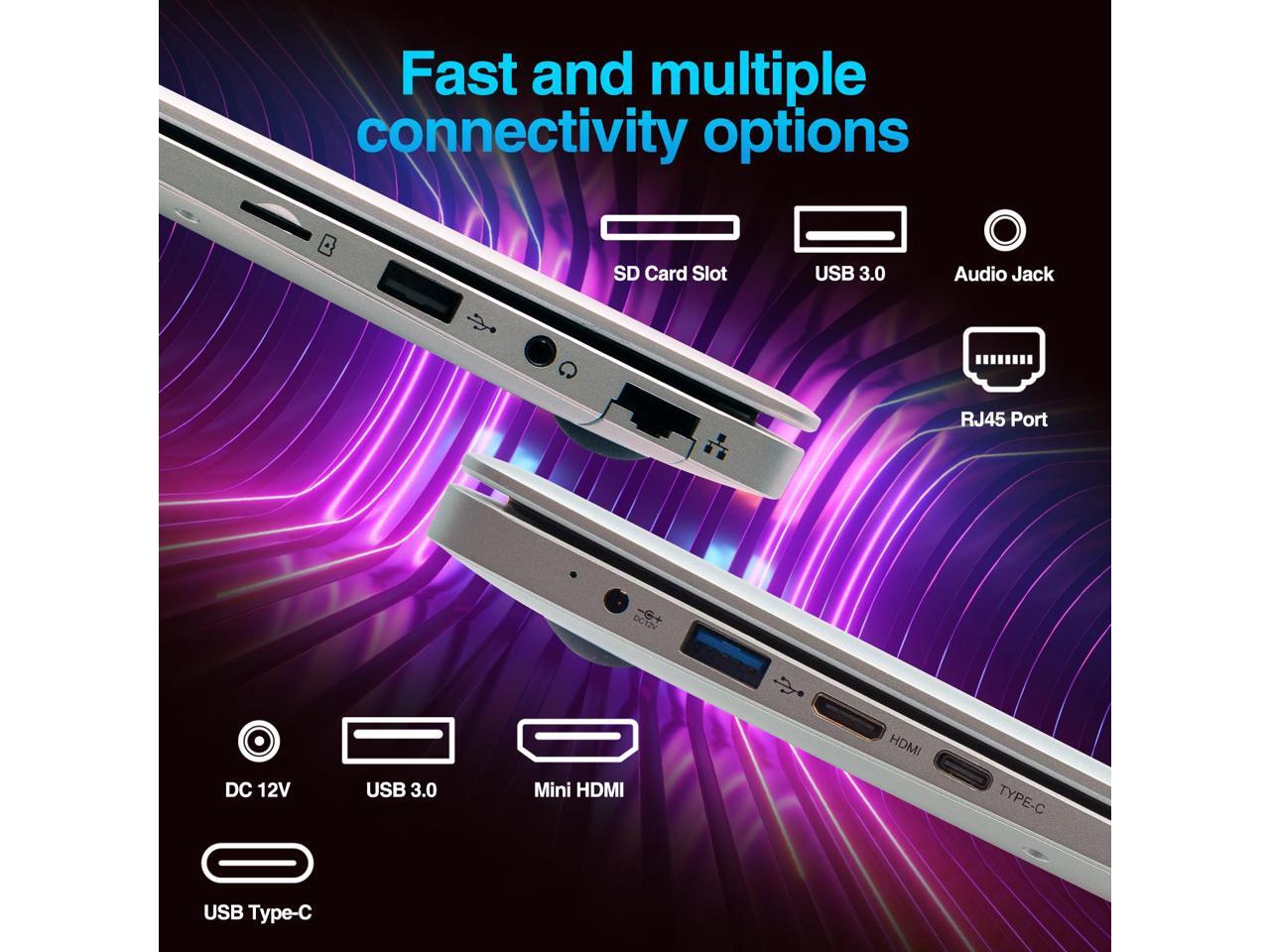 Versatile Connectivity Options: With versatile options like USB 3.0, Mini HDMI Output, USB Type-C, and RJ45, this pc laptop offers flexibility and convenience.
