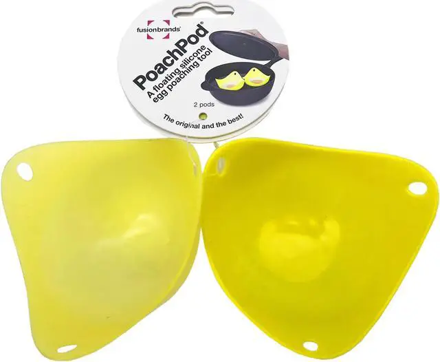 Create perfectly poached eggs every time with the FusionBrands Yellow Egg Poach Pod. This essential kitchen tool includes two floating silicone pods designed for effortless poaching. Ideal for quick breakfasts or impressing guests with elegant poached egg presentations these nonstick and flexible pods are heat resistant up to 550°F. Each pod measures 3 inches in diameter and 1.5 inches deep made from FDA food safe silicone that is BPA free. Plus they are dishwasher and microwave safe for easy cleanup. Elevate your breakfast game with this versatile cooking must have.