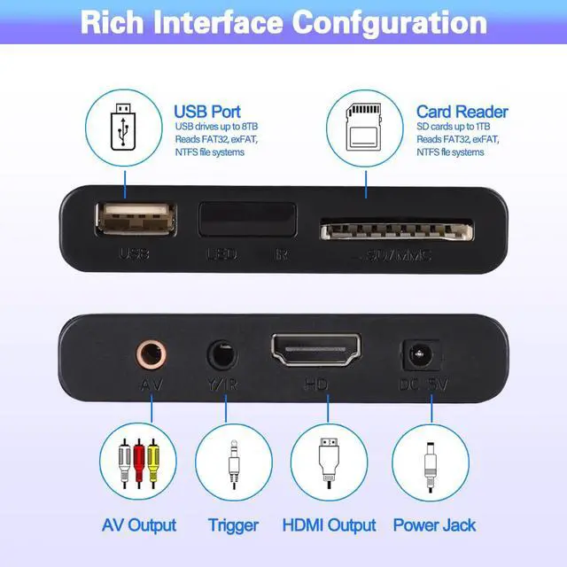 Supports Large Capacity Portable Hard Drives Or Camera SD Card Expansion, Making It Easy To Decode And Play All Music, Movies, And Family Photos.