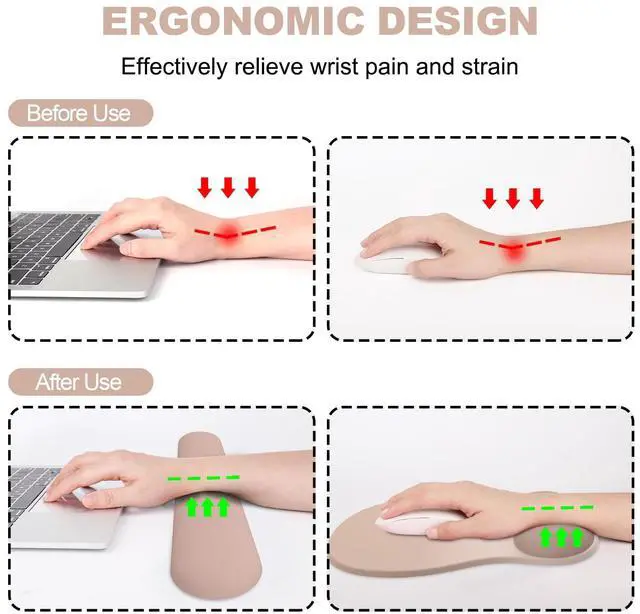High-quality Material: Wrist rest for mouse is filled with ultra soft gel, offers plush support to alleviate wrist pressure and pain. Keyboard pad features memory foam lining, good resilience, not easily deformed