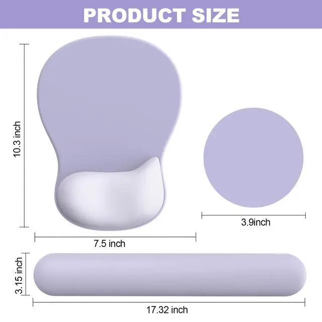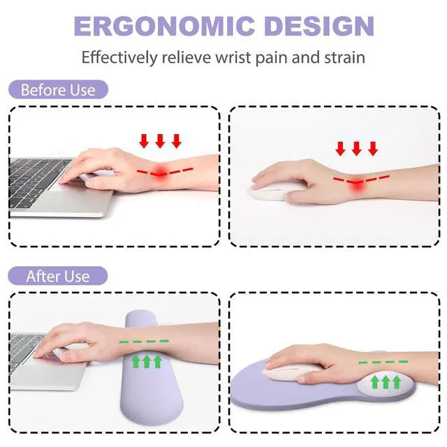 Ergonomic Mouse Pad with Wrist Rest and Keyboard Wrist Rest, Mousepad and Keyboard Pad, Non-Slip PU Base, Pain Relief, Mouse Pad with Wrist Support for Gaming, Computer, Office, Purple
