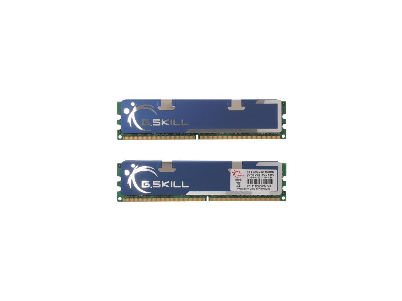 G.SKILL HK 4GB (2 x 2GB) 240-Pin DDR2 SDRAM DDR2 800 (PC2 6400) Dual Channel Kit Desktop Memory Model F2-6400CL4D-4GBHK