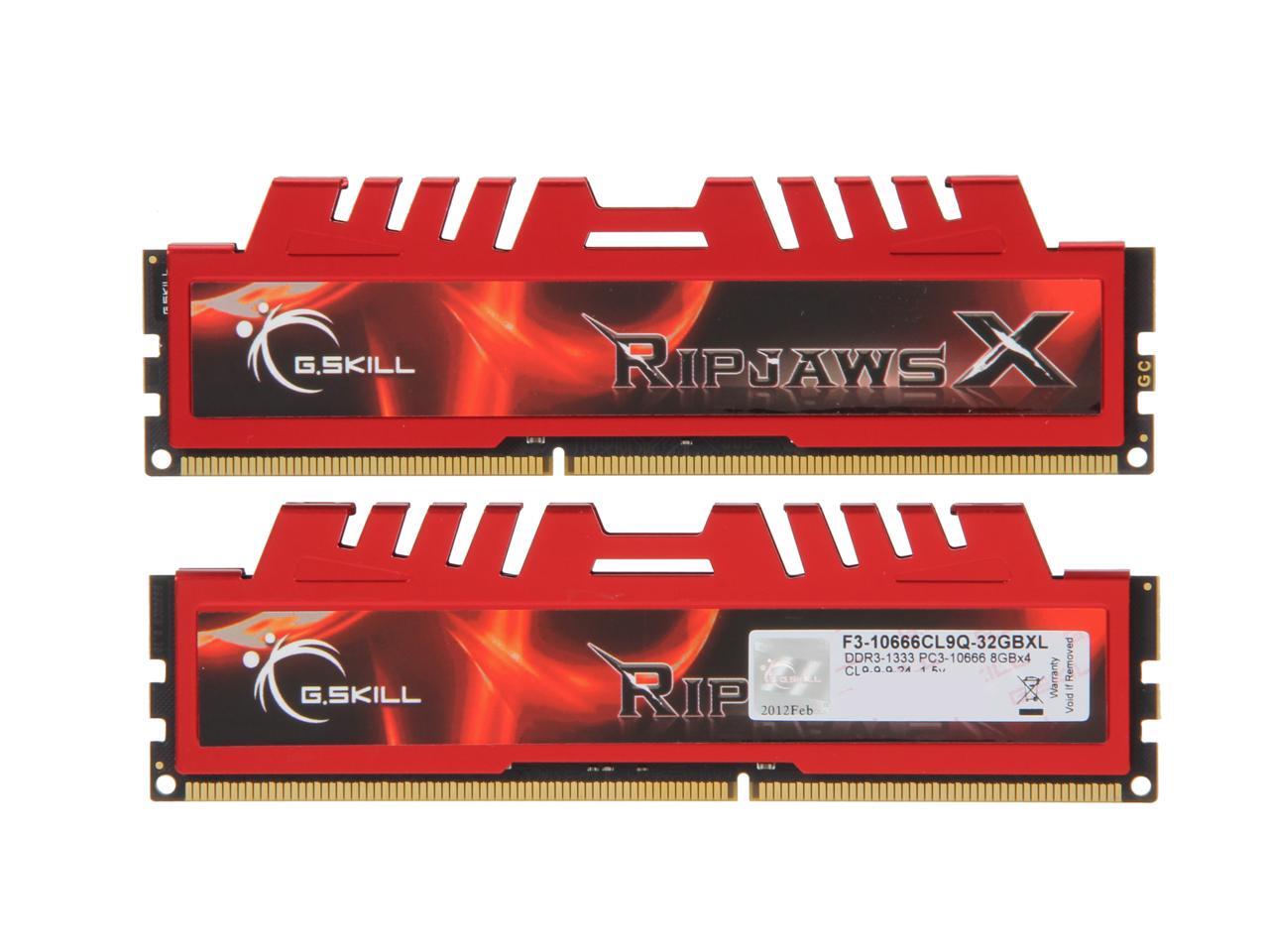 G.SKILL Ripjaws X Series 32GB (4 x 8GB) DDR3 1333 (PC3 10666) Desktop Memory Model F3-10666CL9Q-32GBXL