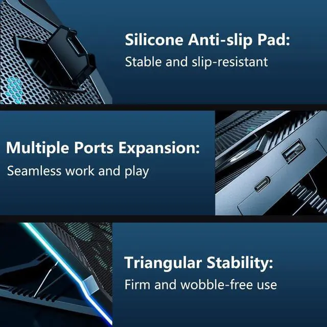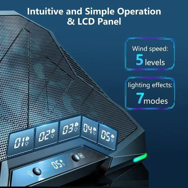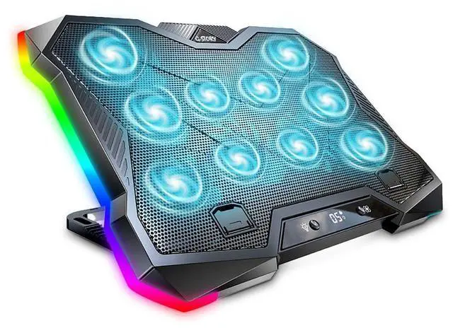base refrigerante laptop RGB game Laptop Cooling Pad with 10 Powerful Turbo fan Gaming Laptop 12inch 13inch 14inch 15inch 15.6inch 16inch 17inch 17.3inch 18inch Cooler Adjustable Stand Portable Laptop Riser for Desk Notebook Fast Cooling Laptop , Adjustable Speed, LCD Screen