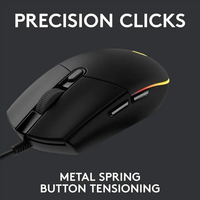 Primary left and right buttons have a Logitech G exclusive metal spring button tensioning system which delivers precise button actuation and consistent experience—click after click.