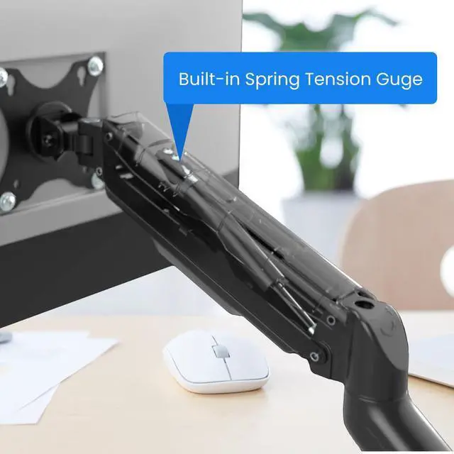 Gas-Spring Joints: The arm extends up to 21.2 inches and features gas-spring technology for smooth height, tilt, and rotation adjustments without slipping.