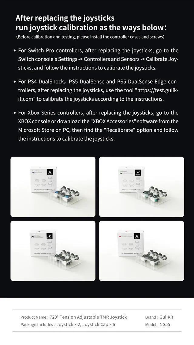 2.For PS4 DualShock, PS5 DualSense and PS5 DualSense Edge controllers, after replacing the joysticks, use the tool on our website to calibrate the joysticks according to the instructions.