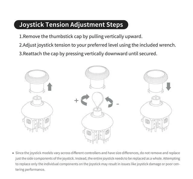 1.For Switch Pro controllers, after replacing the joysticks, go to the Switch console's Settings -> Controllers and Sensors -> Calibrate Joysticks, and follow the instructions to calibrate the joysticks.