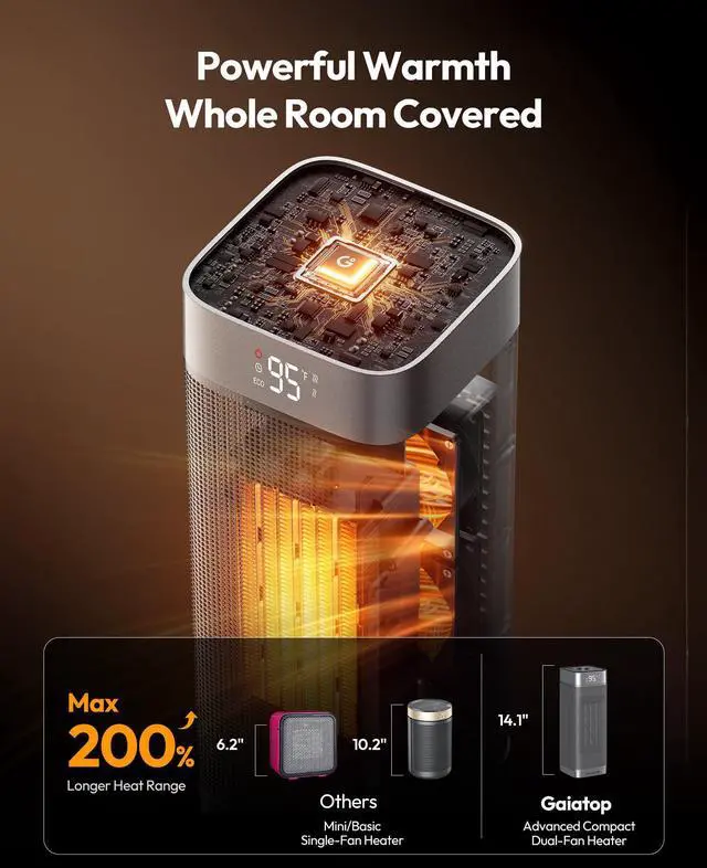 Dont settle for ordinary warmth upgrade to GAIATOP. Get your portable heater today and enjoy ceramic heater speed, energy efficient space heater savings, and the comfort only a space heater with thermostat precision can deliver. Your perfect winter companion is here.