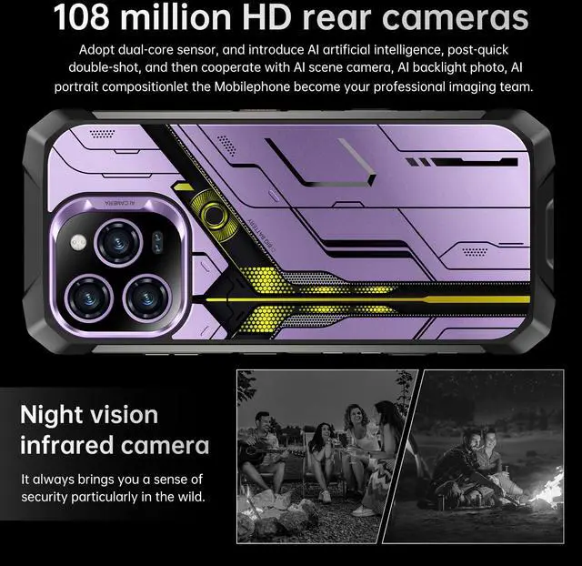 13. Camera:Front and rear HD cameras capture every moment with high-definition photo modes (Night Vision, Ultra HD, Photo/Video, Night Scene, QR Code Scan, Pro Mode, Slow Motion, Live Photo, Time-Lapse, Night Vision Recording, Beauty Panorama, Portrait).