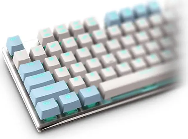 The two colorways of keycaps of blue and white provide your setup with a clean and tranquil feel paired with an ice blue backlit with 5 distinct levels of brightness to fit into any type of build.