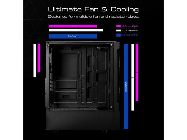 Fan Support: Top: 2 x 120mm / Front: 3 x 120mm 2 x 140mm / Rear: 1 x 120mm / Bottom: 2 x 120mm