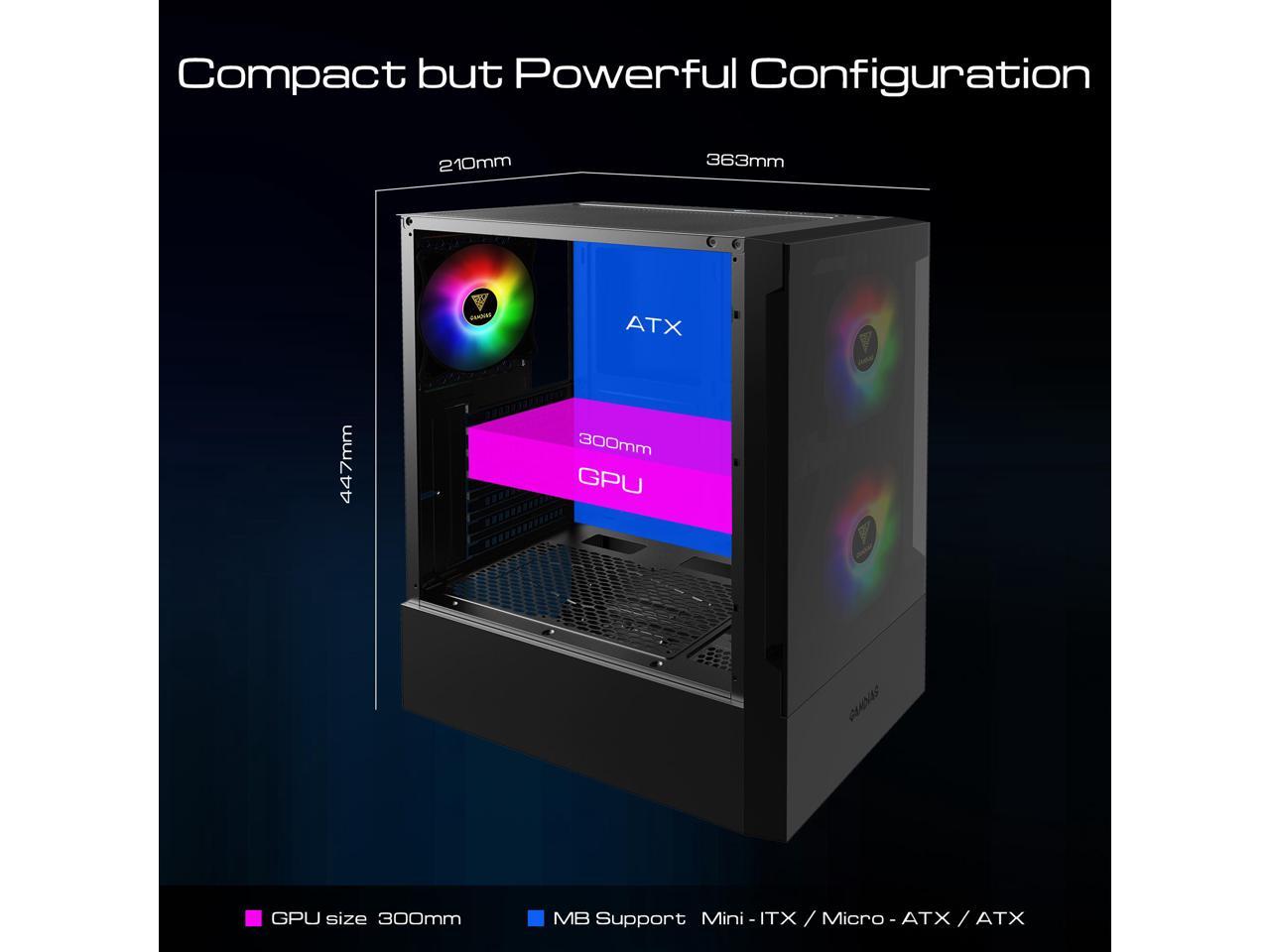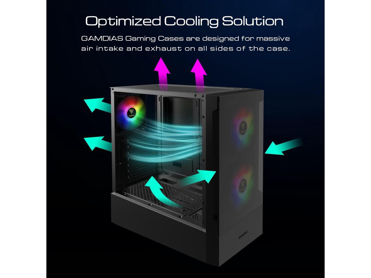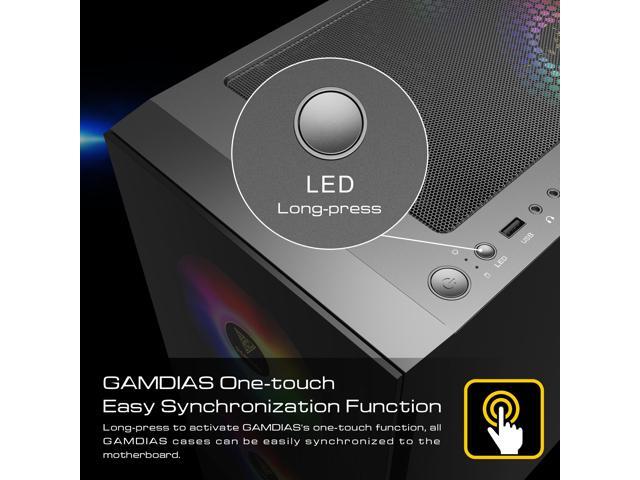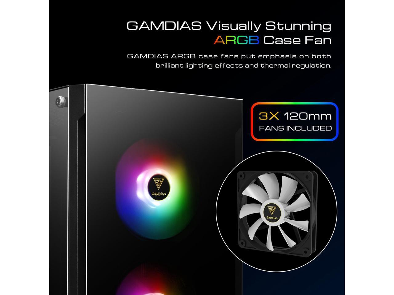 Gamdias TALOS E3, Tempered glass, 3x 120mm ARGB fans 5v-3pin sync
