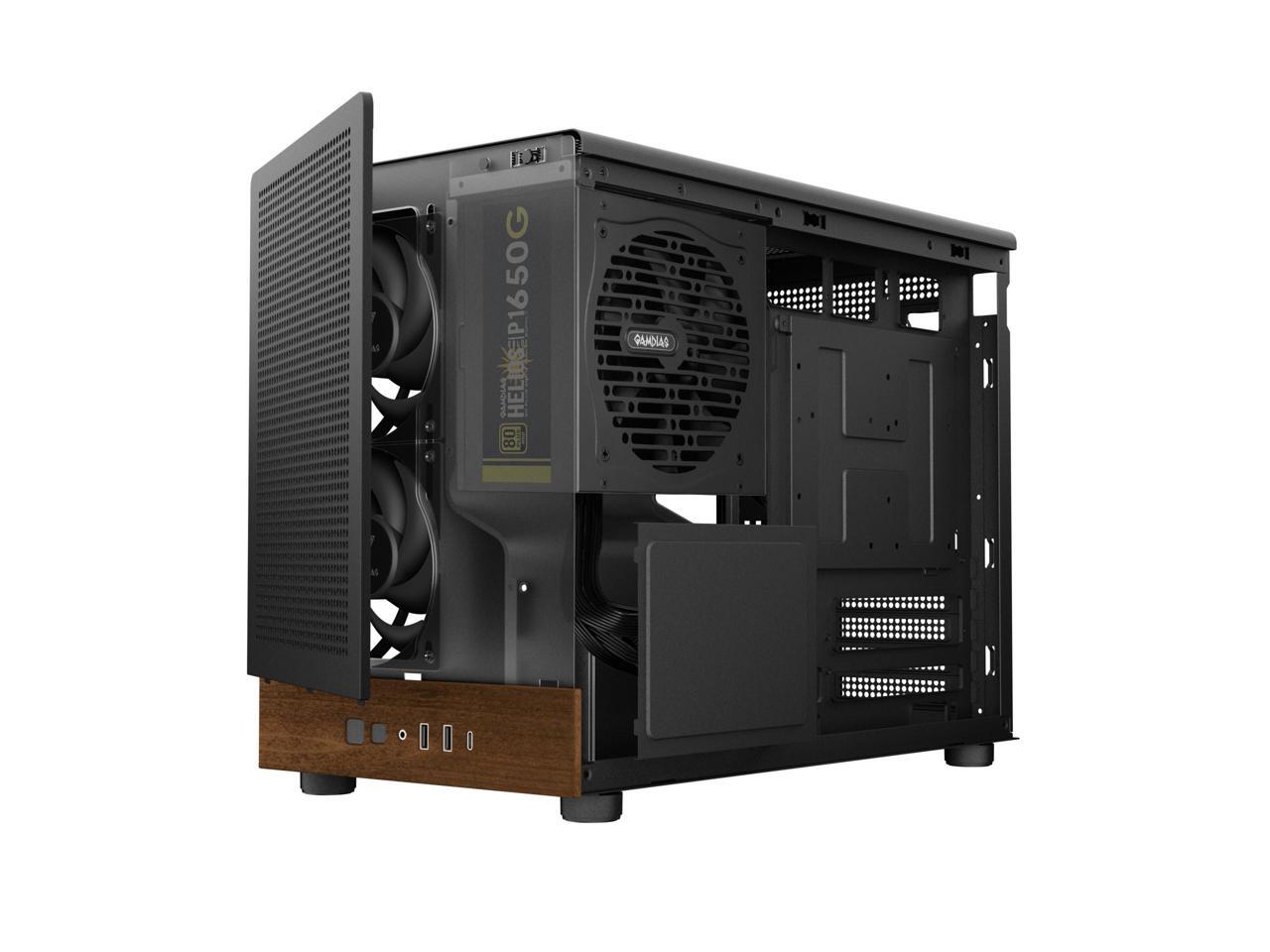 Gamdias ATHENA M4M WOOD, with ATX 3.1 650W 80+ GOLD PSU 5yr warranty, mini ITX, mATX, micro mesh small form factor PC case, 3 PWM fans (Airflow up to 57.56 CFM), fits: 395mm GPU and 360mm radiators.