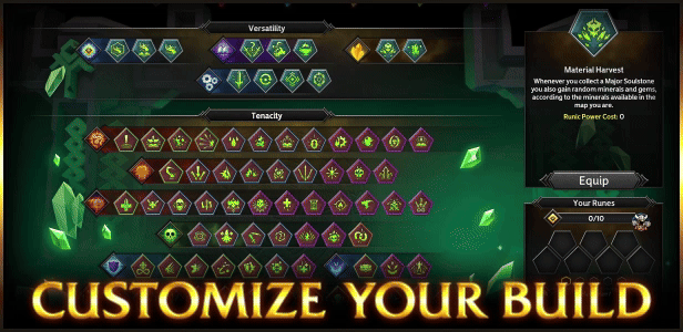 Pick from dozens of powerful runes to shape your path from the start, and create unstoppable, game-breaking synergies by combining them with hundreds of passive skills.