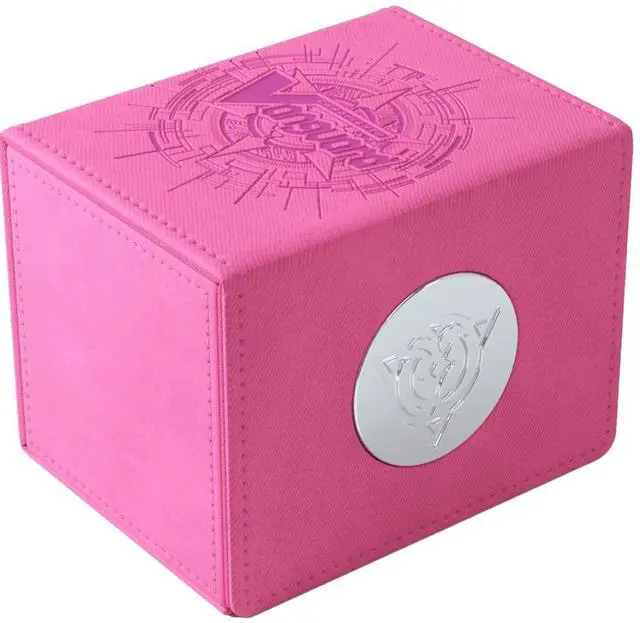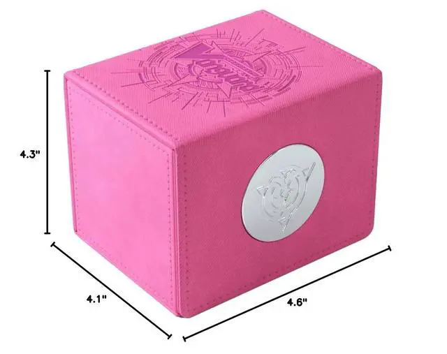 • HOLDS UP TO 50 DOUBLE-SLEEVED CARDS: This premium deck box is perfectly sized to hold a full deck of up to 50 cards, even double-sleeved. In addition, there are 2 protected pockets to present and safely store up to 4 special sleeved cards.