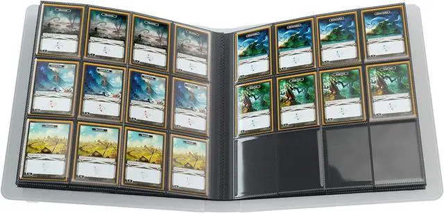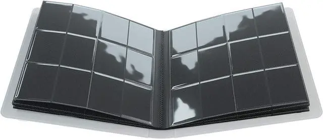 capacity of 480 cards even double-sleeved. Four compartments per page are