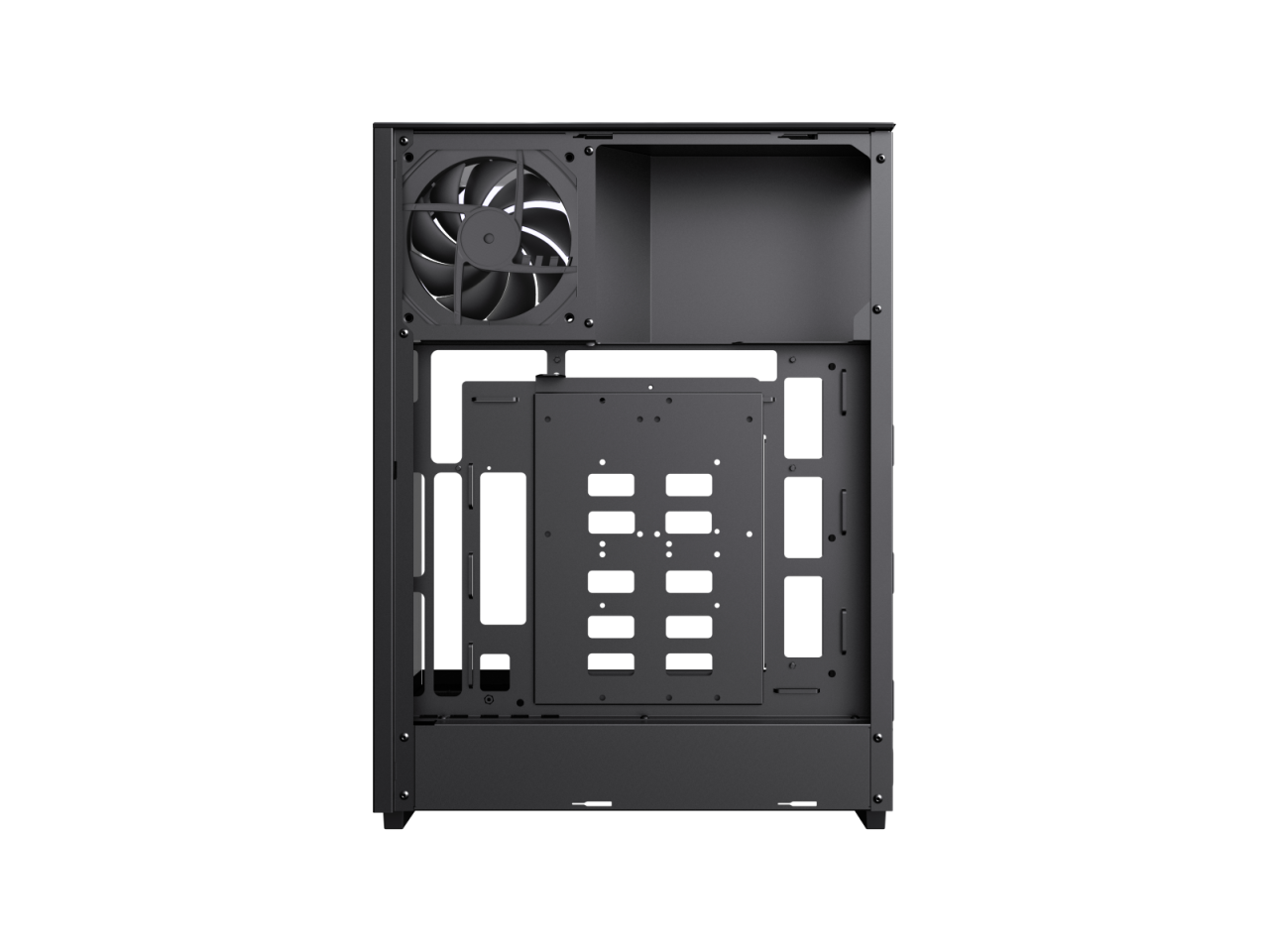 GAMEMAX T20 BK Black case. Three-sided tempered glass offers a full, unobstructed view of your hardware. 90° rotated motherboard layout enhances airflow using the natural Stack Effect.