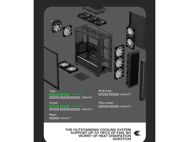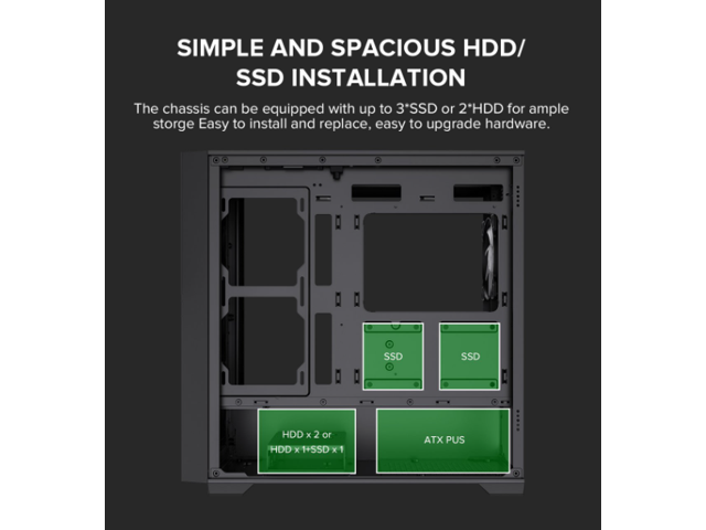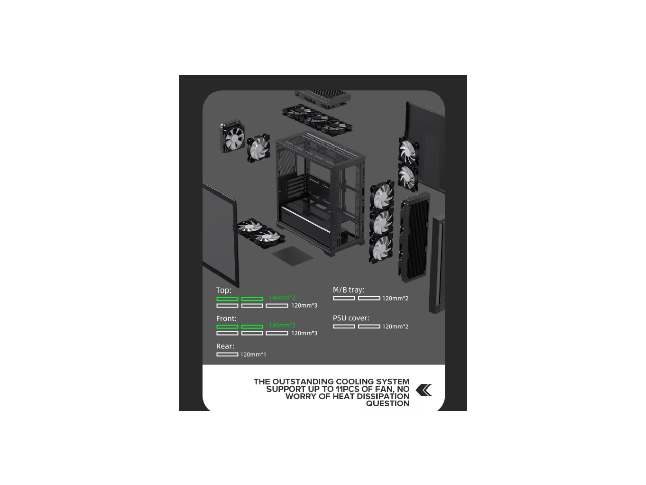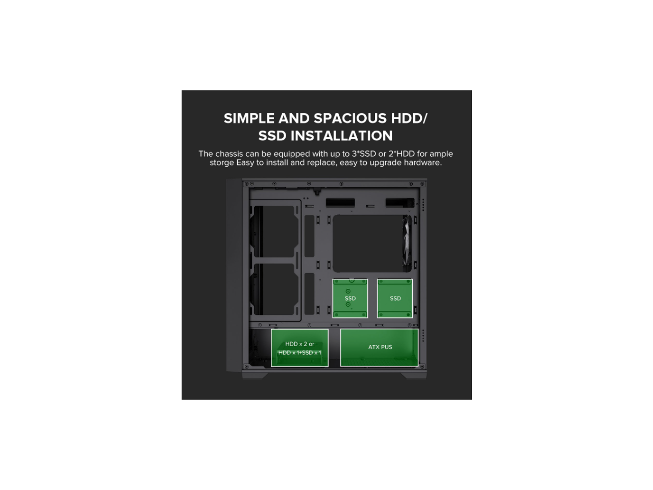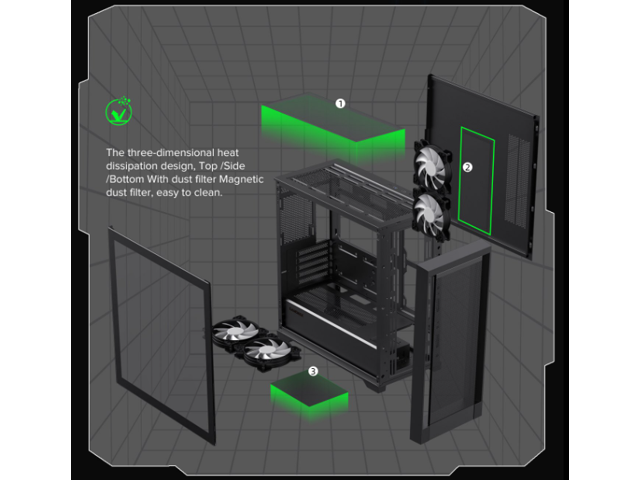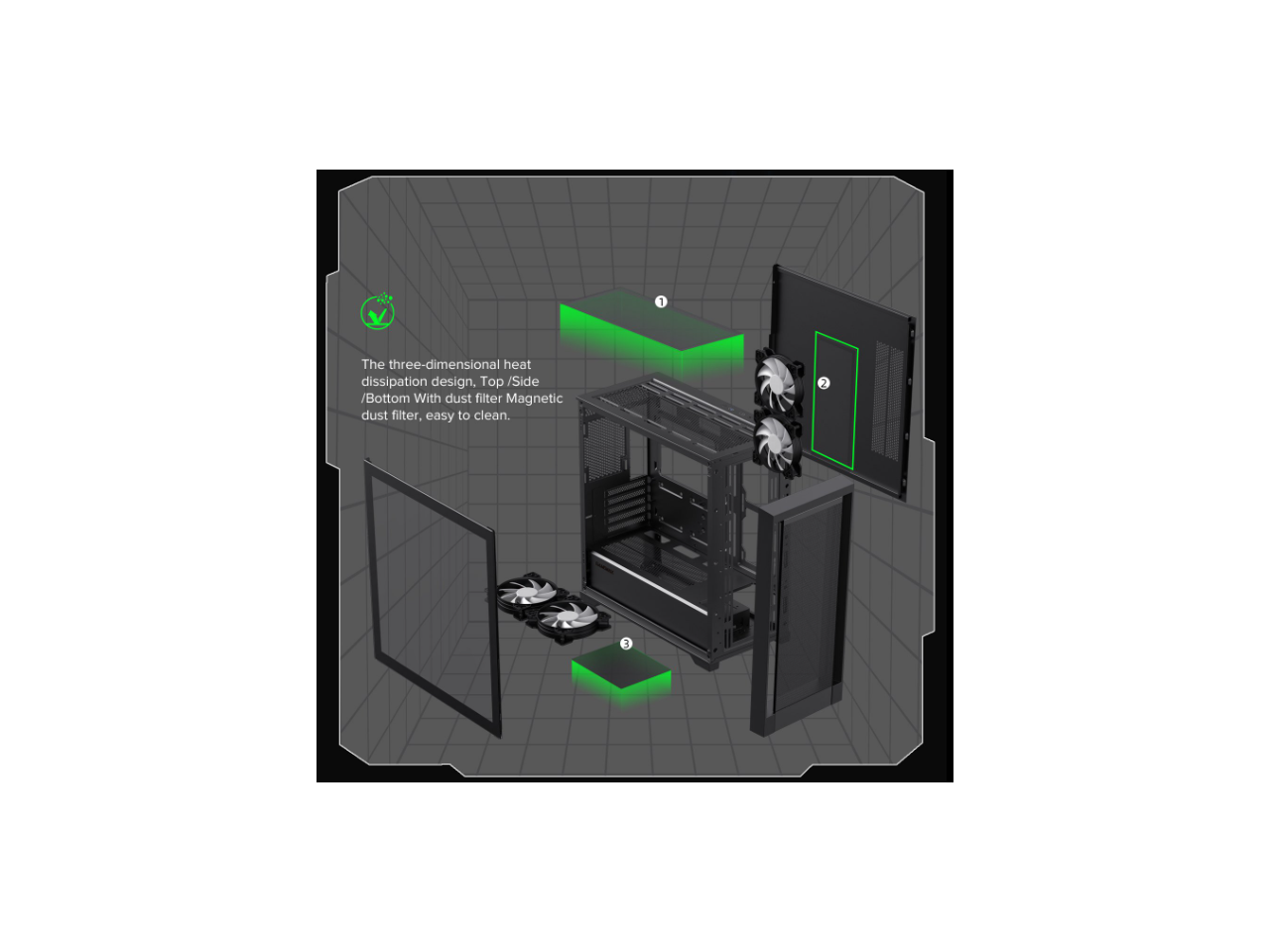 - Compelling Front Panel: The front panel balances functionality and aesthetics This mesh consists of 1.0mm diameter mesh holes spaced at 2.0mm apart, providing a 48.3% open area ratio that allows greater airflow to pass through and efficiently prevents dust from entering the PC.
