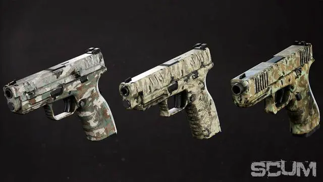 Introducing the SCUM weapon skins pack! This cosmetic DLC will let you customize your weapons to better camouflage them – or just express your personality. With 14 patterns to choose from, each of them customizable with different paints, the sky is the limit on how your weapon can look.