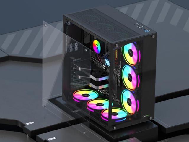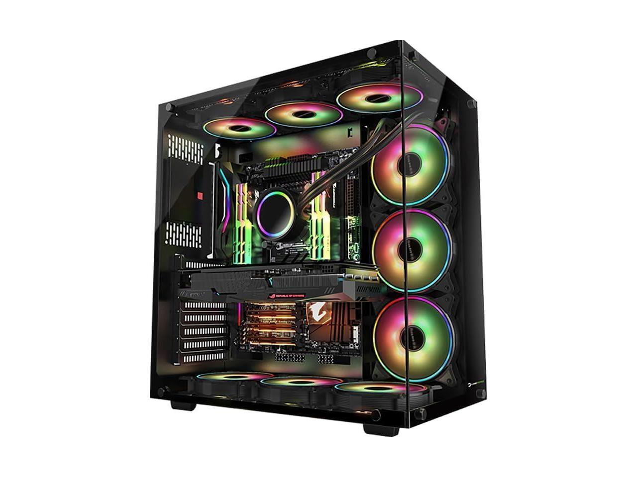 - High Performance - Comes with pre-installed 6xARGB High Air Flow Fans, a remote and controller let's you add up to 10 fans including your AIO coolers, ensuring optimal cooling for your computer components.