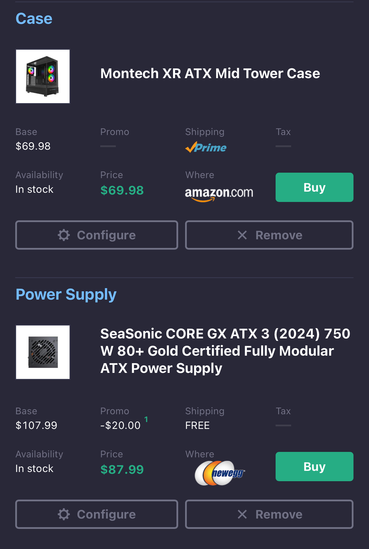 This Intel build has a lower GPU but it actually chosen for the rest of the build, where as the other is future proofed for at least an extra generation. This builds memory clock is also a higher freq, but this doesn’t have any free items included. This case is decent and good for starter customers.
