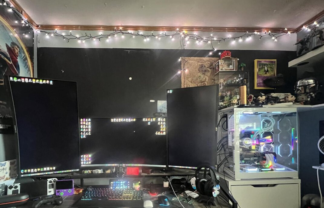 light up cables are from lian li as well running a 3 monitor system but so far happy with my progression from my first ever computer started with a prebuilt alienware with an i3 and 4gb of ram 1 tb storage so you could say ive learned and spent a lot of money and effort into this build