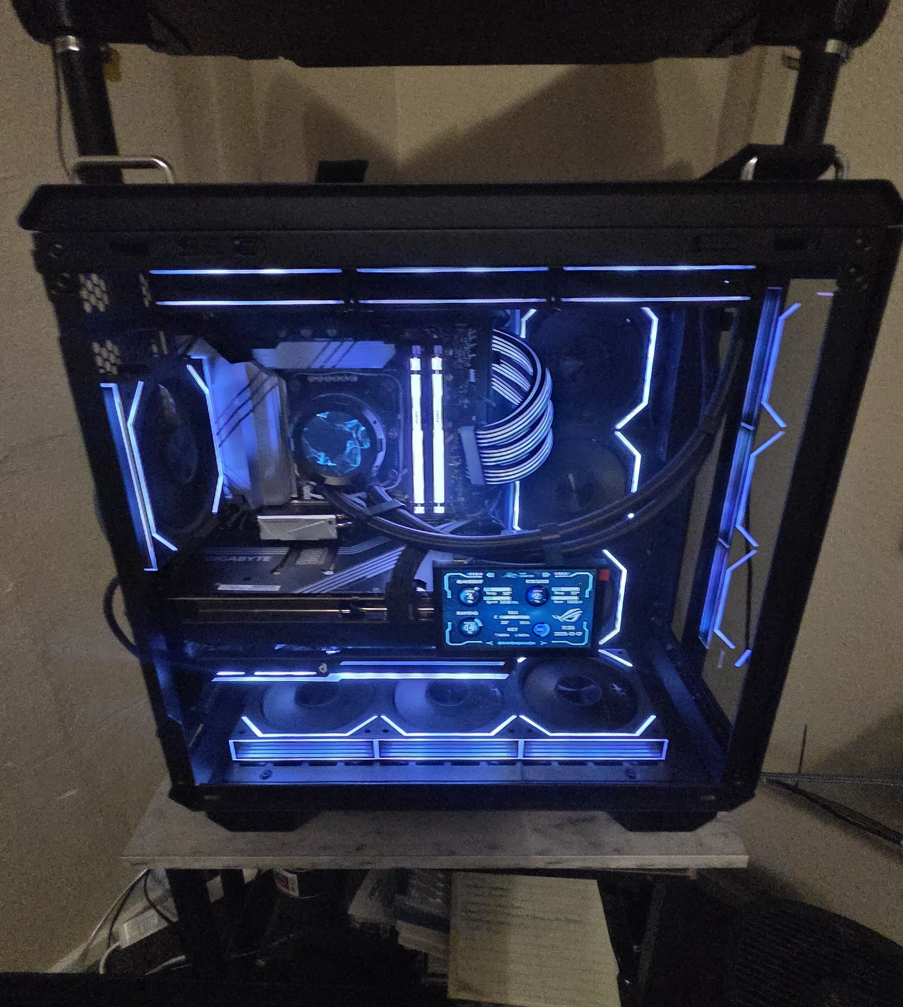 Heloo. The aio i used is the ID-COOLING SL360. With the aio you can mod it to your own preferences. I surfed to find a gif i liked for it. Used youtube to learn how to download and install using the coolers software. Same goes for the 5inch display to learn how to download and install. The display is a WOWNOVA 5" Computer Temp Monitor. FYI and full disclosure both used google drive to download the software where both companys put thier software. Its all online… lol. I was iffy about downloading from google drive but had no problems in regards to spyware or viruses. They both can be found on amazon but i didnt purchase from there. Where i live we have auction sites online and go in person so i saved ALOT on my build. Only thing i purchased new is my gpu. Rest was on ebay and intown auction. Basically paid a third of price of full system. Thanks for the like and comment. Dont really have any1 to speak about computers except the IT guy at work. Its nice to find a site where we can “boast” on our builds. Good luck and have fun!!