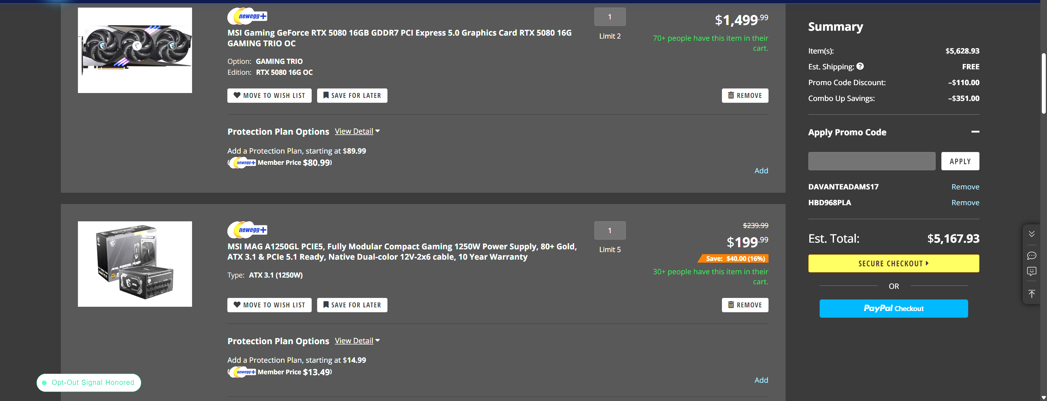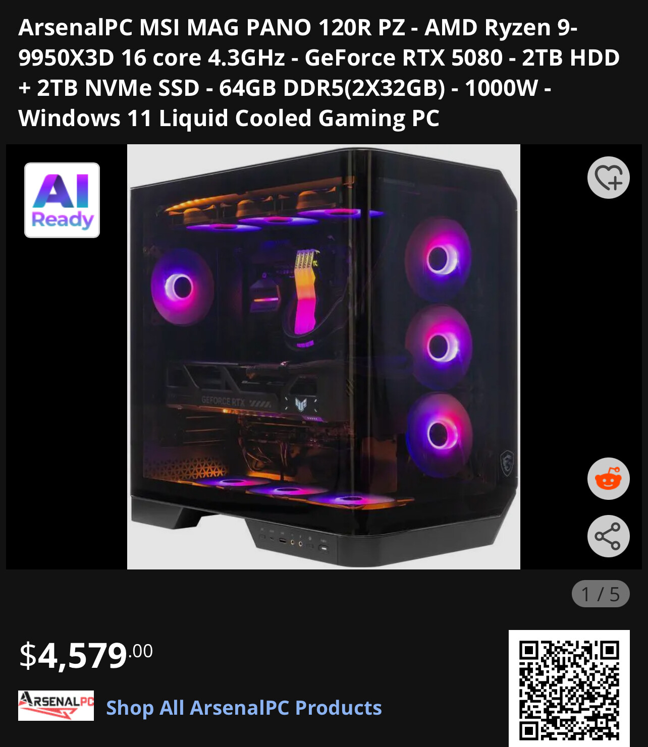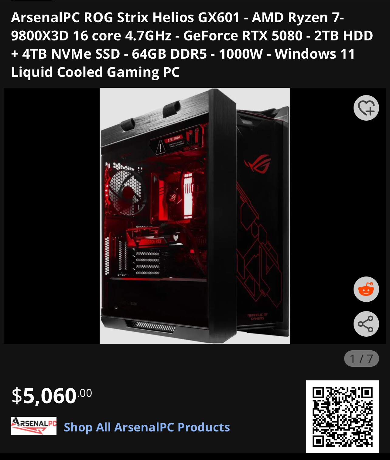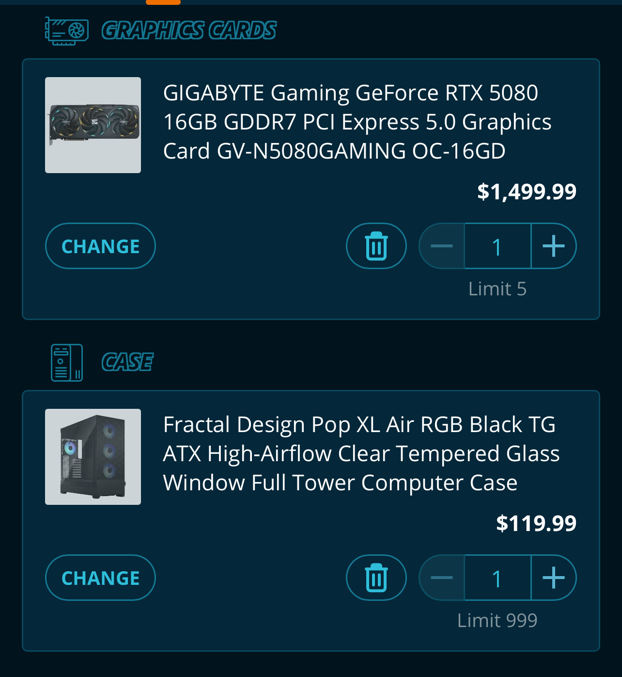 If you can find a 5090 and stay within budget then swap out the 5080 for that. honestly the 5090 is overkill for gaming though.