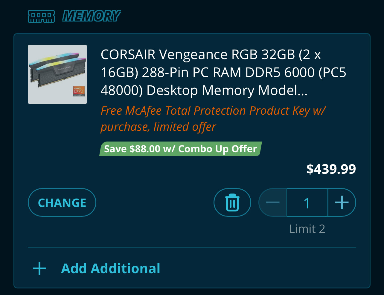 I would start my build by choosing one item and building out from it based on compatibility. Either choose a desired cpu or motherboard or even gpu and see what will work well with that part from there.