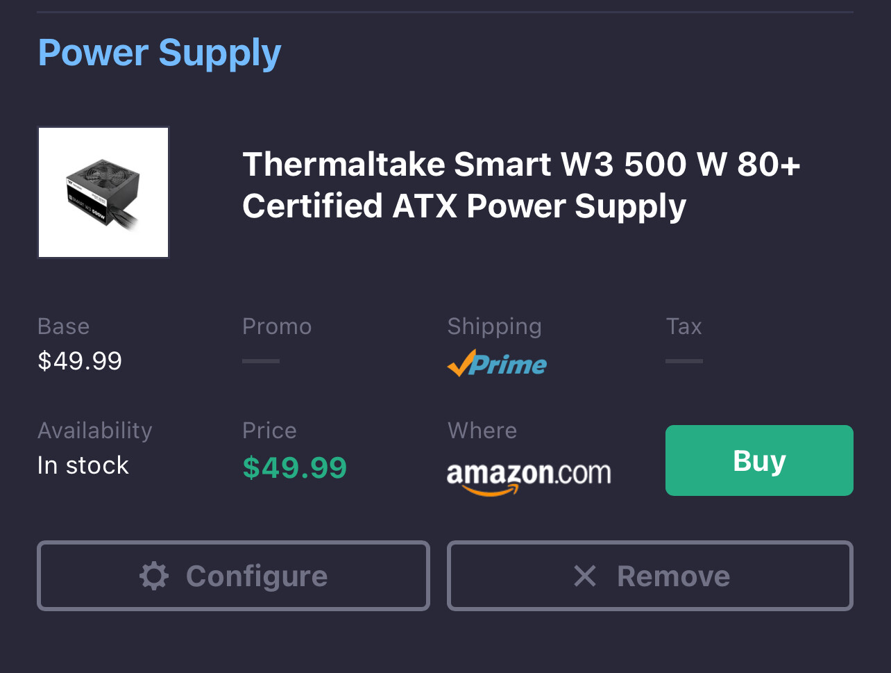 500 watt PSU is cutting it close for that system Found a 600watt for $5 less
