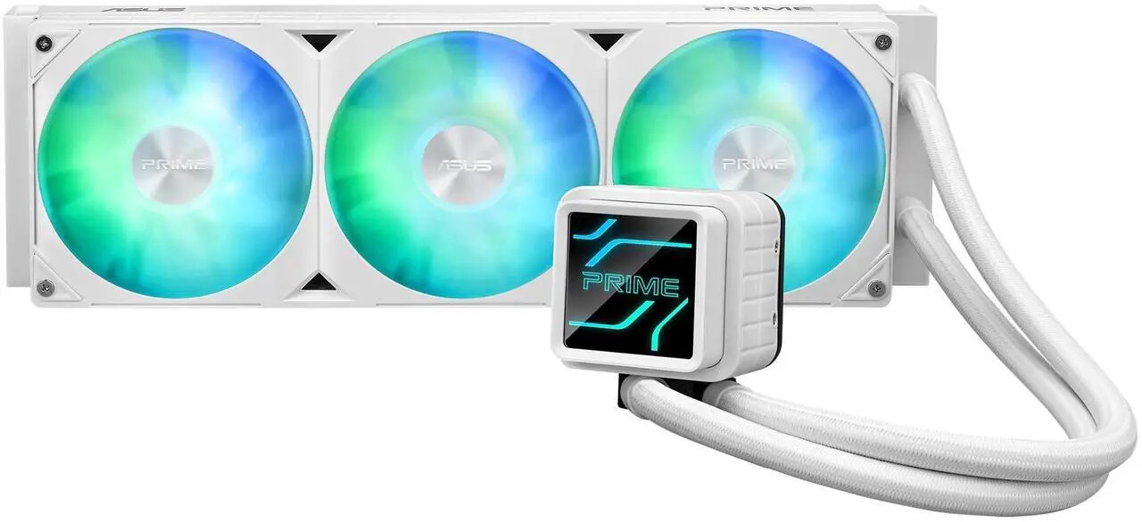 Pictured: Asus Prime AP202 custom-built PC with Asus Prime LC 360 ARGB white AIO cooling solution