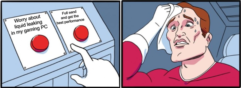 For the purposes of this article, we are only looking at closed-loop, All-in-One liquid cooling solutions which come pre-filled, pre-sealed from major name brands. ArsenalPC has sold thousands of custom-built gaming PCs through Newegg and Amazon using closed-loop liquid cooling solutions, and we have a grand total of ZERO leaks reported. With that kind of track record, the safety concern is a non-issue. Major manufacturers individually perform pressure testing on loops to ensure there are no leaks possible during the lifespan of the coolers. Note that this logic does not apply to open-loop liquid cooling solutions, where extreme enthusiasts will individually choose a CPU block, GPU block, custom tubing, a pump (or pump/reservoir combo), a distribution block, a drain valve… those systems require regular maintenance, and can (and should) scare away average gamers! Without proper assembly and testing, they are indeed prone to leaking, so precautions should be taken accordingly. These safety concerns do not apply to All-in-One liquid cooling systems during their lifespan.