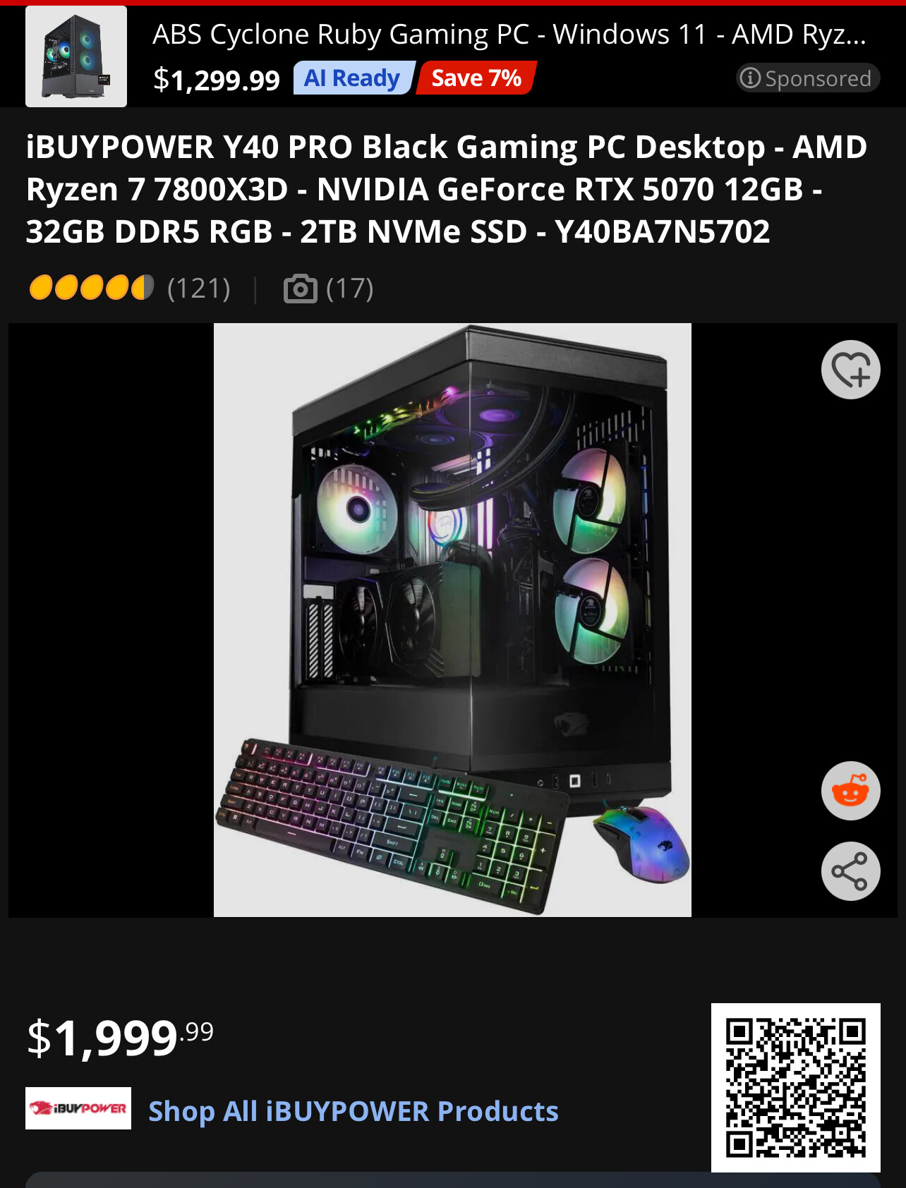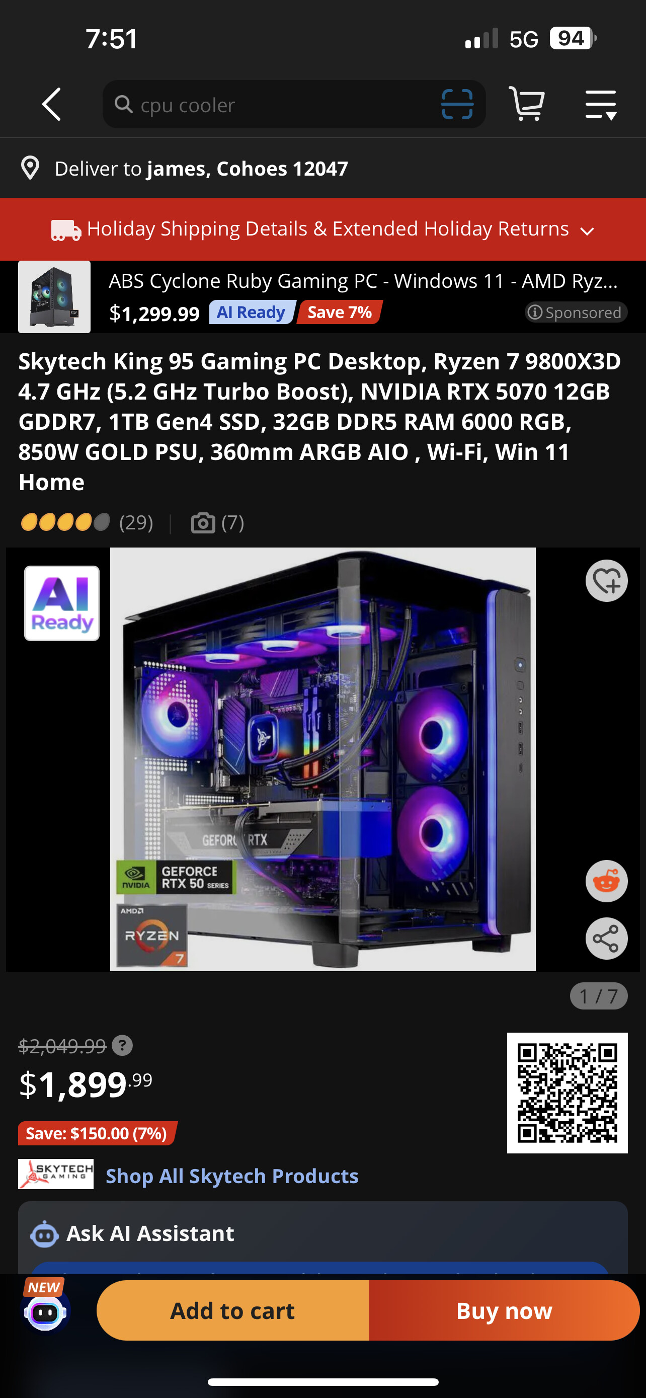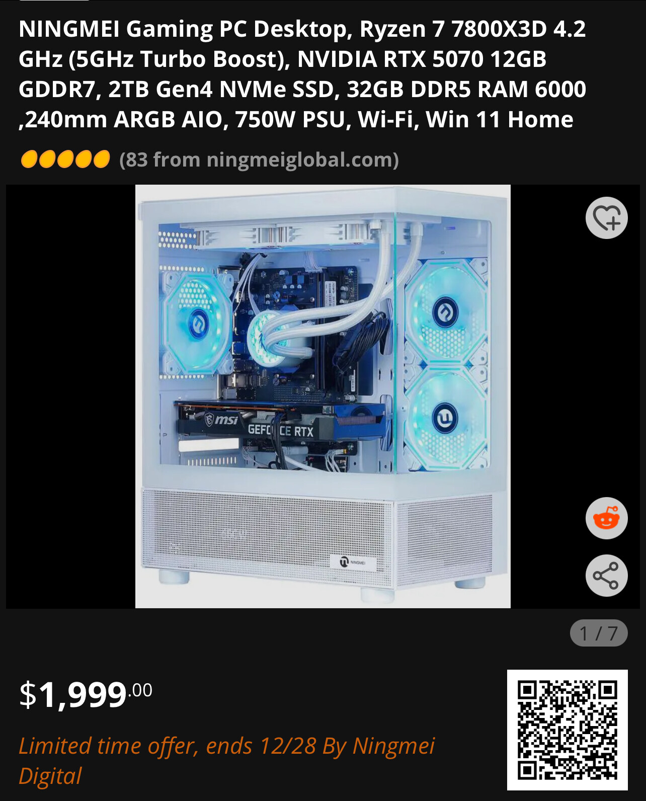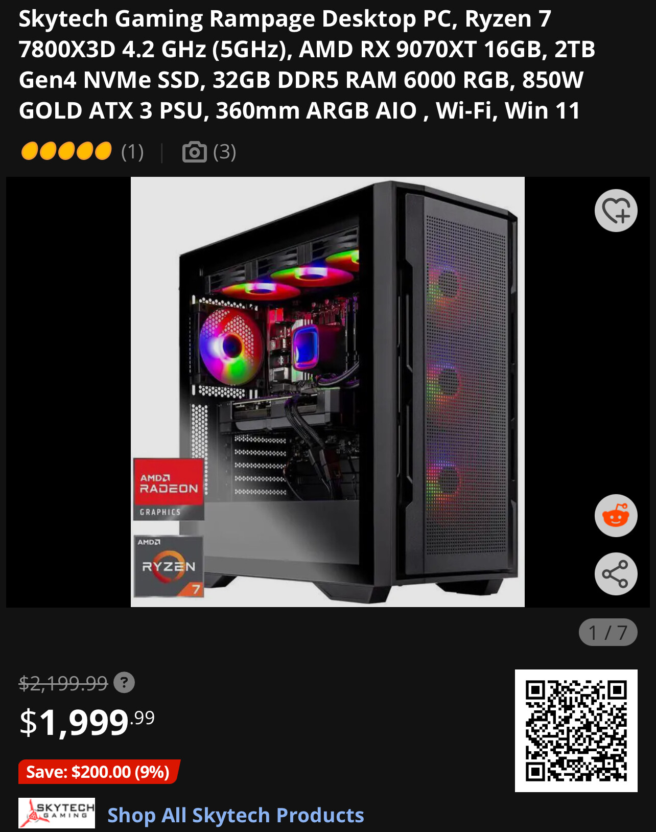 7800X3D CPU RTX 5070Ti $1,958.94