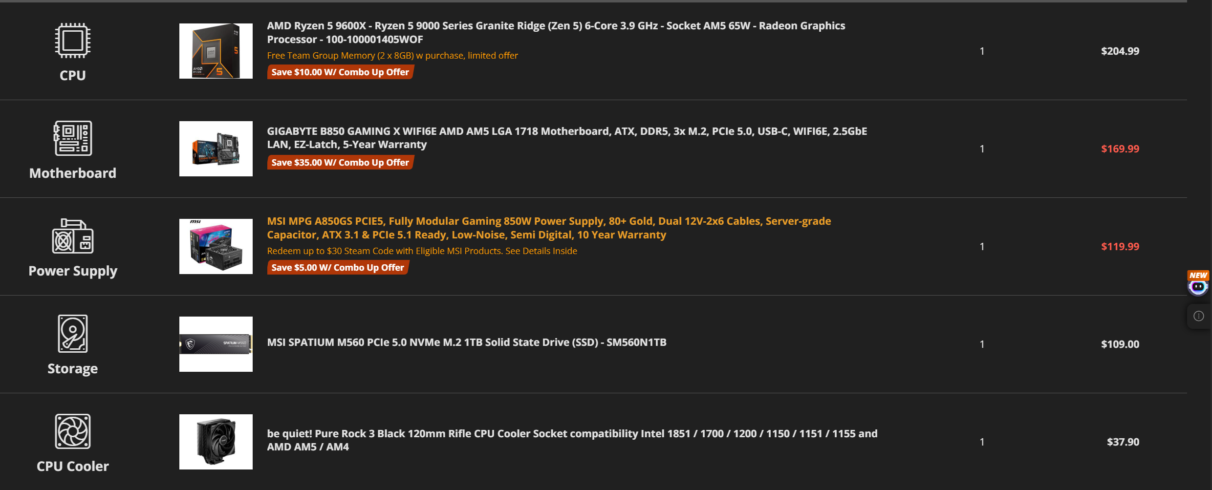 Hey I just wanted to get some opinions on a parts list I made with the combo deals/pc builder on the site. I am gonna get some parts elsewhere like the case and gpu, but it says there’s a compatibility issue with the mobo and the ssd but just cause the mobo doesn’t have enough info on it yet. I’ve been hesitant to get parts for a pc so this is the closest I’ve been to hitting purchase lol. Just wanted some thought pls.