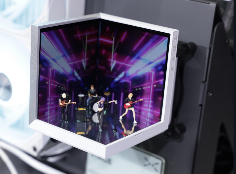 Widescape Mode creates a more immersive viewing experience, while Split Screen Mode lets you monitor comprehensive system information at a glance. Mirror Mode adds bold, eye-catching visual effects for extra flair. A double-sided base switching guide makes it easy to choose between mirror and matte finishes. The STAGE space is also designed to showcase figures, models, dioramas, 3D prints, and other physical display pieces.
