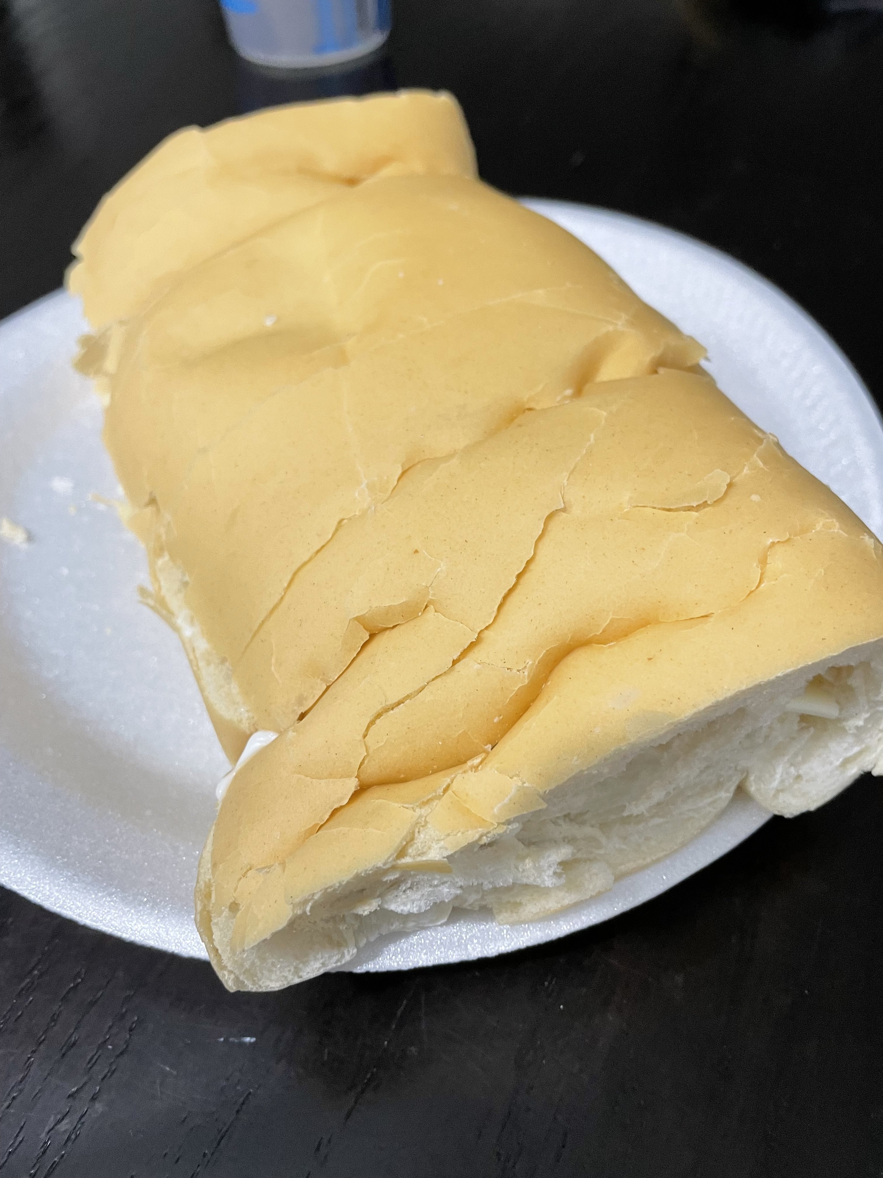 Mayo, mustard, ham, cheese, Cuban or Puerto Rican bread.