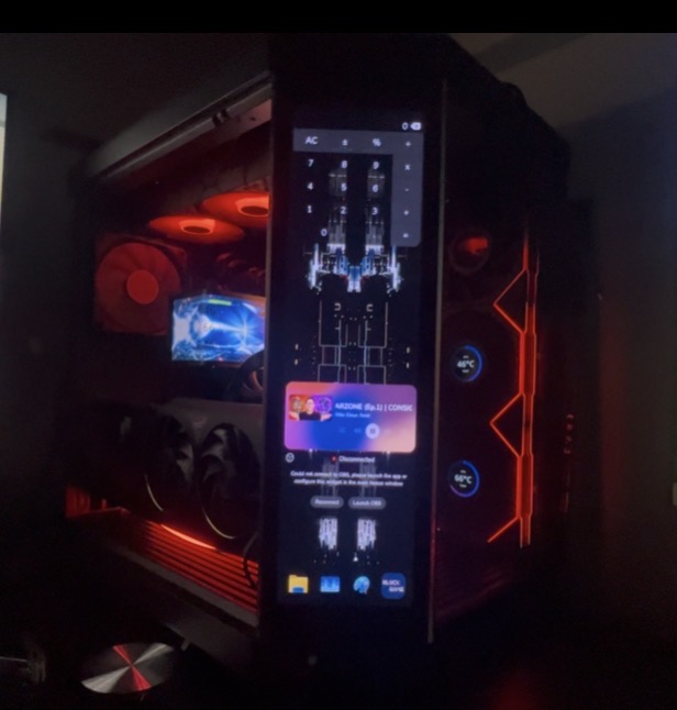 That PC reminds me of Darth Vader. I like the functional use of the calculator add in as well. Is it a touch screen to be able to do that? That PC must really add a statement in the dark.