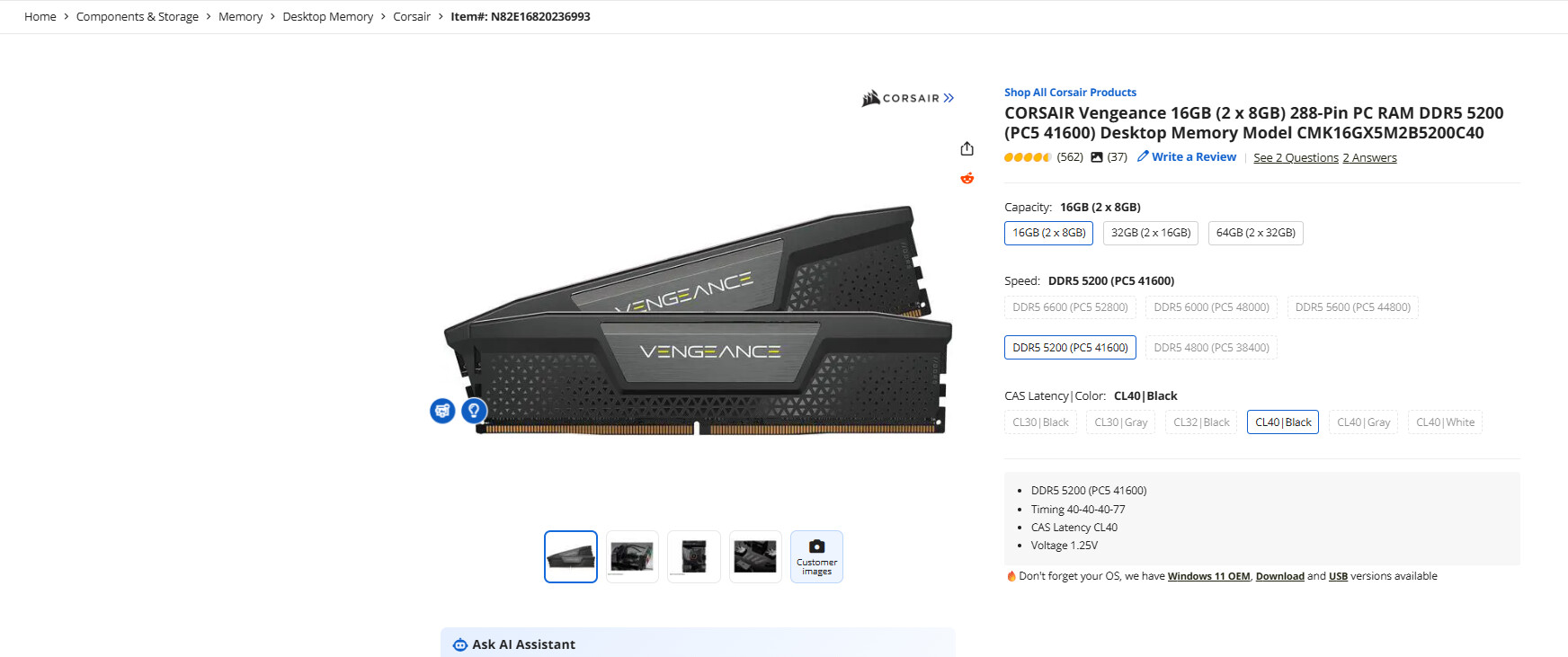 - Two things about my RAM: I bought the Crucial 8GB piece off of Amazon, not Newegg, so I included a link to its Amazon page since it’s not on my Build List. Also, I only recently learned that having 3 non-matched kits like this can affect performance, so I already know that I need to change this, but I will gladly still accept suggestions for improvements