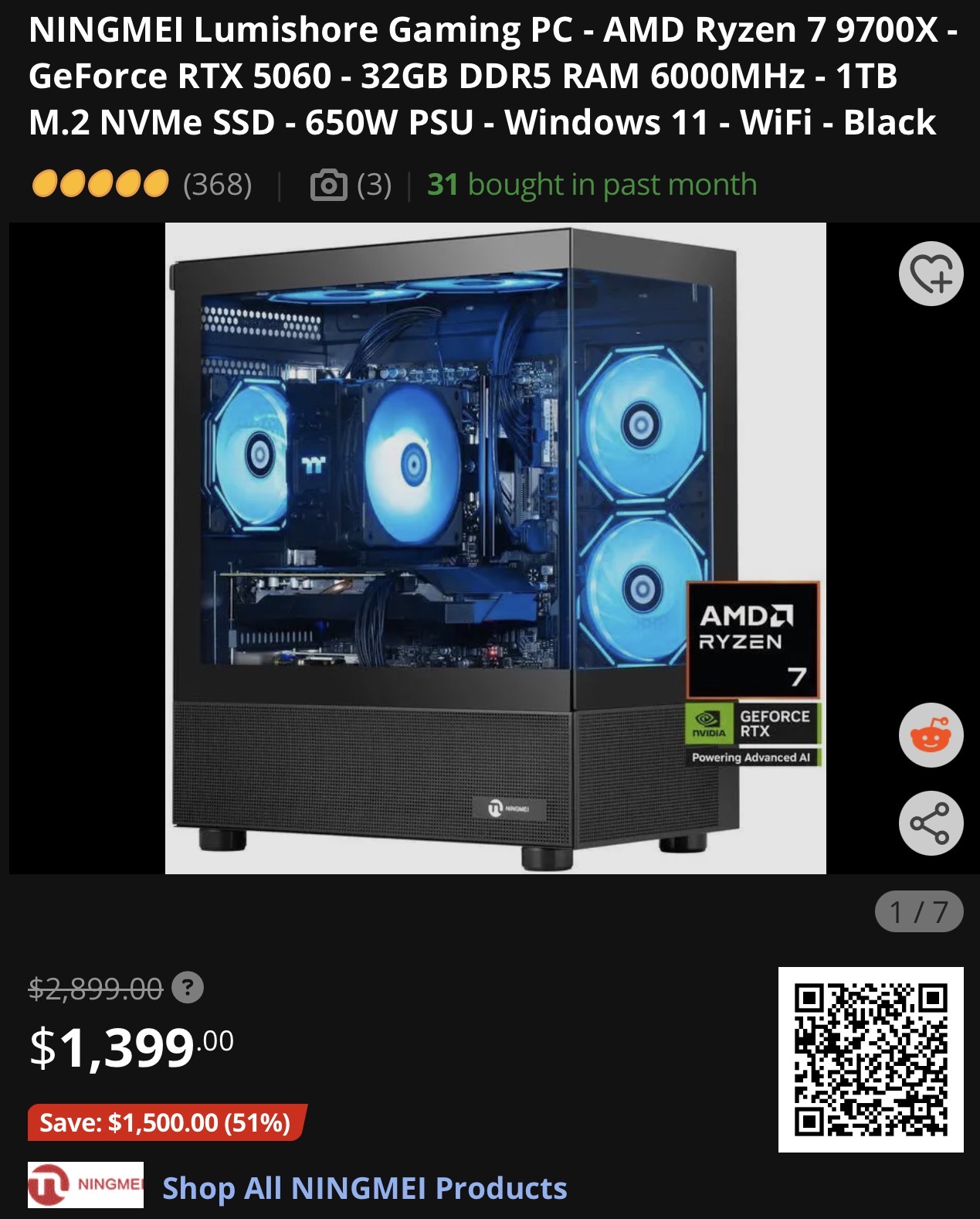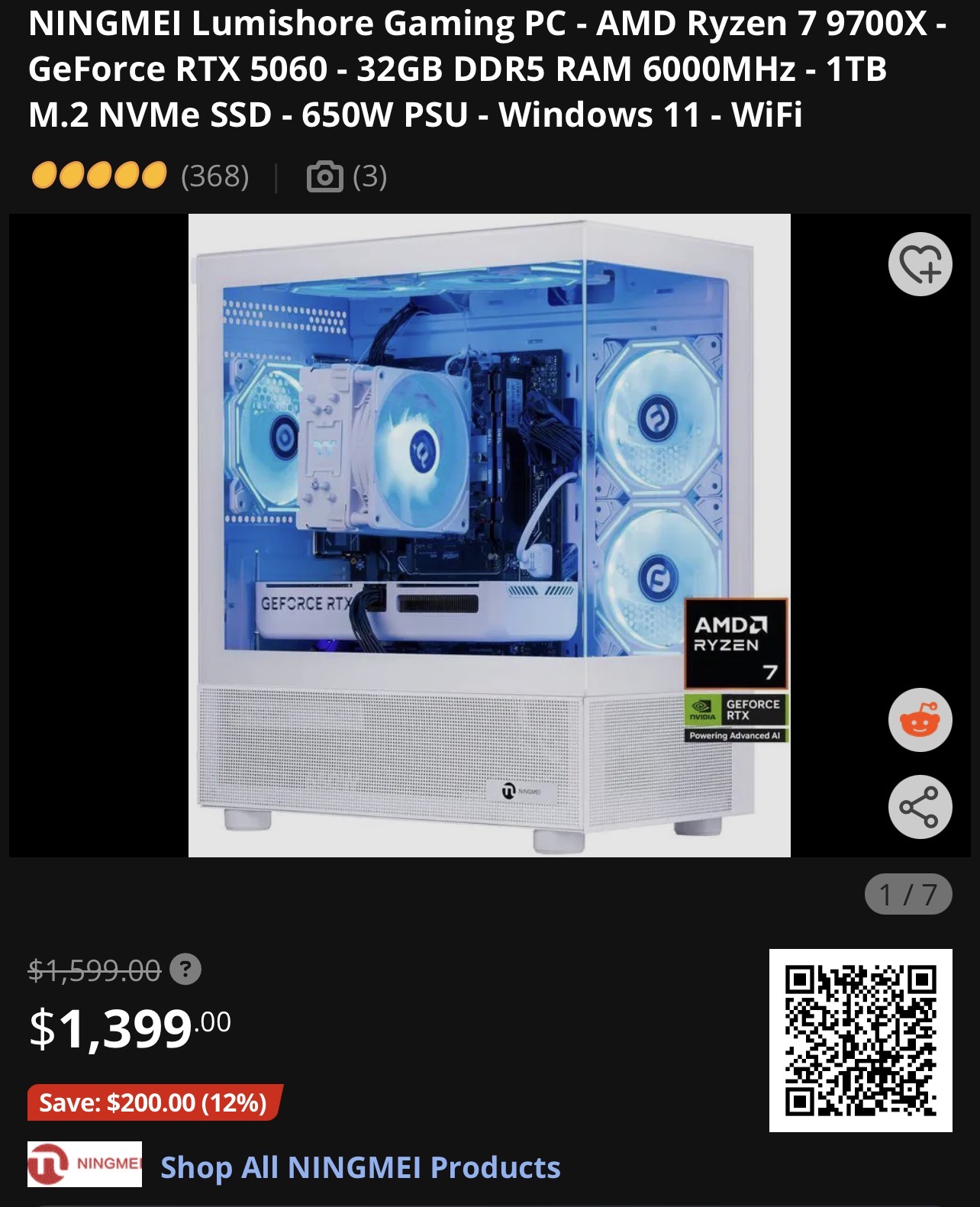 I was looking at a NINGMEI Lumishore Gaming PC with: