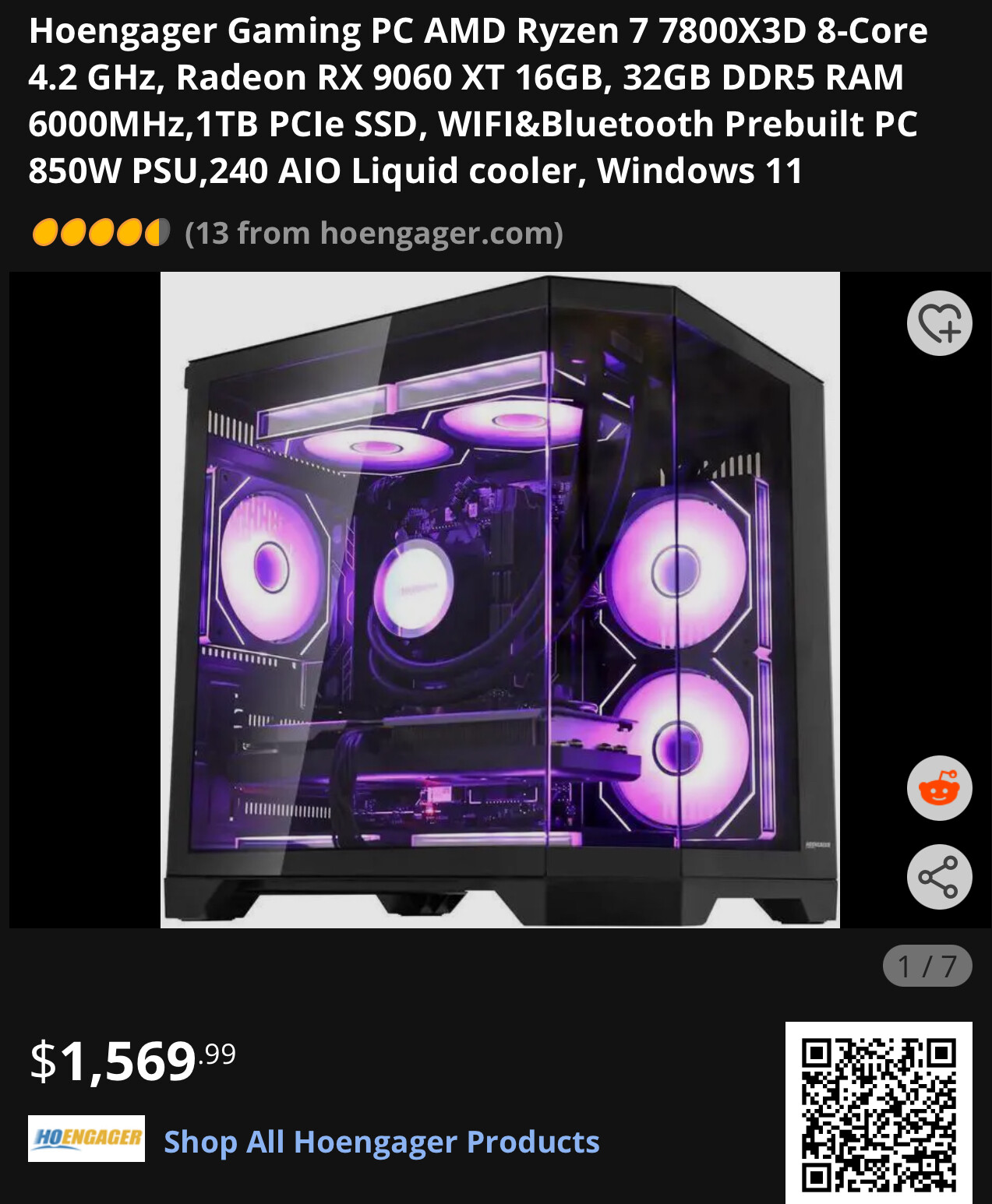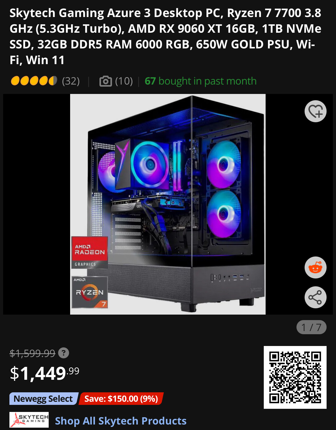 Take a look at theese. The CPU is on the lower end but it is on the latest platform so that makes it highly upgradeable in the future. The 16gb 9060xt is a plus. moving forward tou want 16gb of VRAM. 32GB of ram is nice.