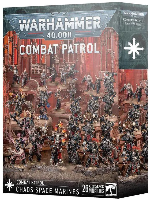 Unleash the fury of the Dark Gods with the Warhammer 40K Chaos Space Marines Combat Patrol. This box set delivers a balanced force of 26 multipart plastic miniatures, perfect for starting a new Chaos Space Marines army or reinforcing your existing Heretic Astartes warband.