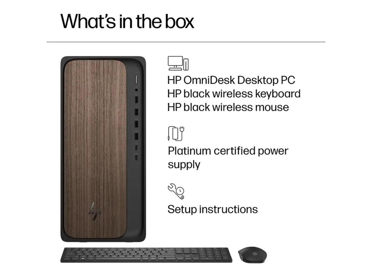 HP OmniDesk M03 AI Desktop PC Intel Core Ultra 9 285 up to 5.60GHz, 96GB DDR5 RAM, 1TB NVMe SSD, NVIDIA GeForce RTX 5070 12GB, Bluetooth 5.4, Windows 11 Pro, Wireless Keyboard & Mouse, Dark Wood