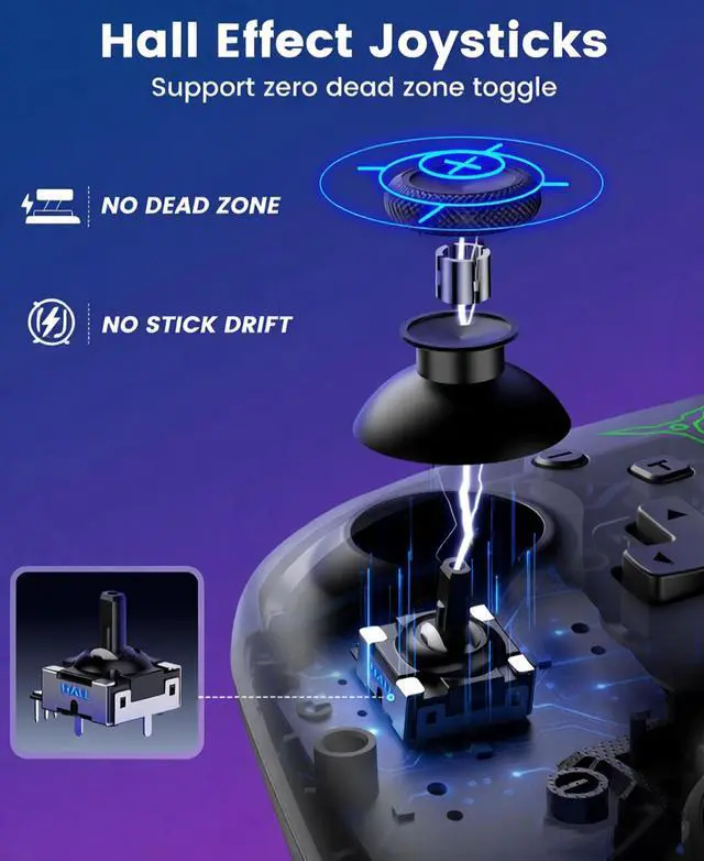 Never Drift, Ultimate Precision with Dual Hall Effect: Equipped with Hall Effect Joysticks (switchable to true 0 deadzone via shortcut) and Hall Sensing Linear Triggers, this controller is engineered to eliminate stick drift forever and provide pixel-perfect control